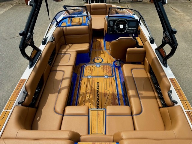 From hull to hardware, Moomba has engineered durability into every detail. The fiberglass construction resists impact and fatigue, while stainless components stand up to years in the elements. Wiring harnesses are sealed to prevent corrosion, and every control switch is marine-rated for moisture resistance. The upholstery stitching uses UV-stable thread to avoid fade and wear, extending the life and look of the interior well beyond the first season.