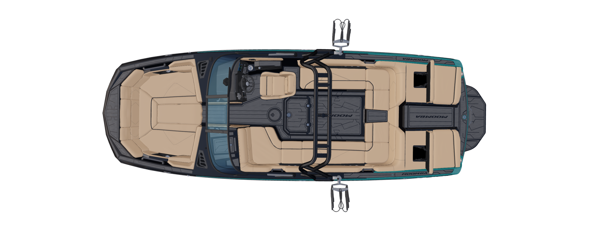 Inside, Moomba has refined every detail for the captain and crew alike. The premium driver seat provides optimal support and visibility, while the Sundeck Flip-Up Backs add flexible lounging options at the rear. An upgraded 12-inch subwoofer and amplified cockpit speakers fill the entire boat with powerful, balanced sound that’s rich enough to match the energy of a full tow session. Above all, the layout ensures easy movement and safety for large groups without sacrificing space or style.
