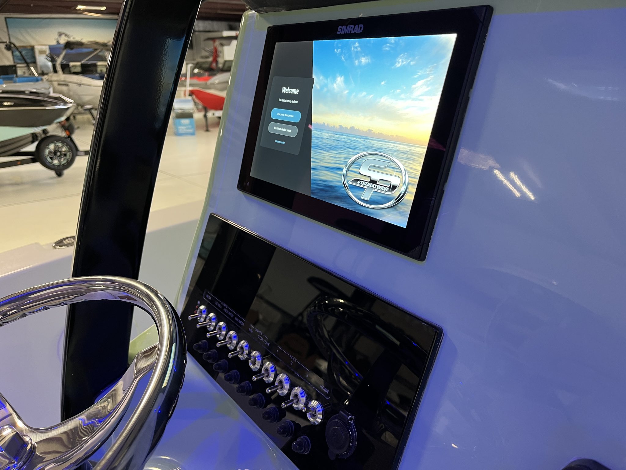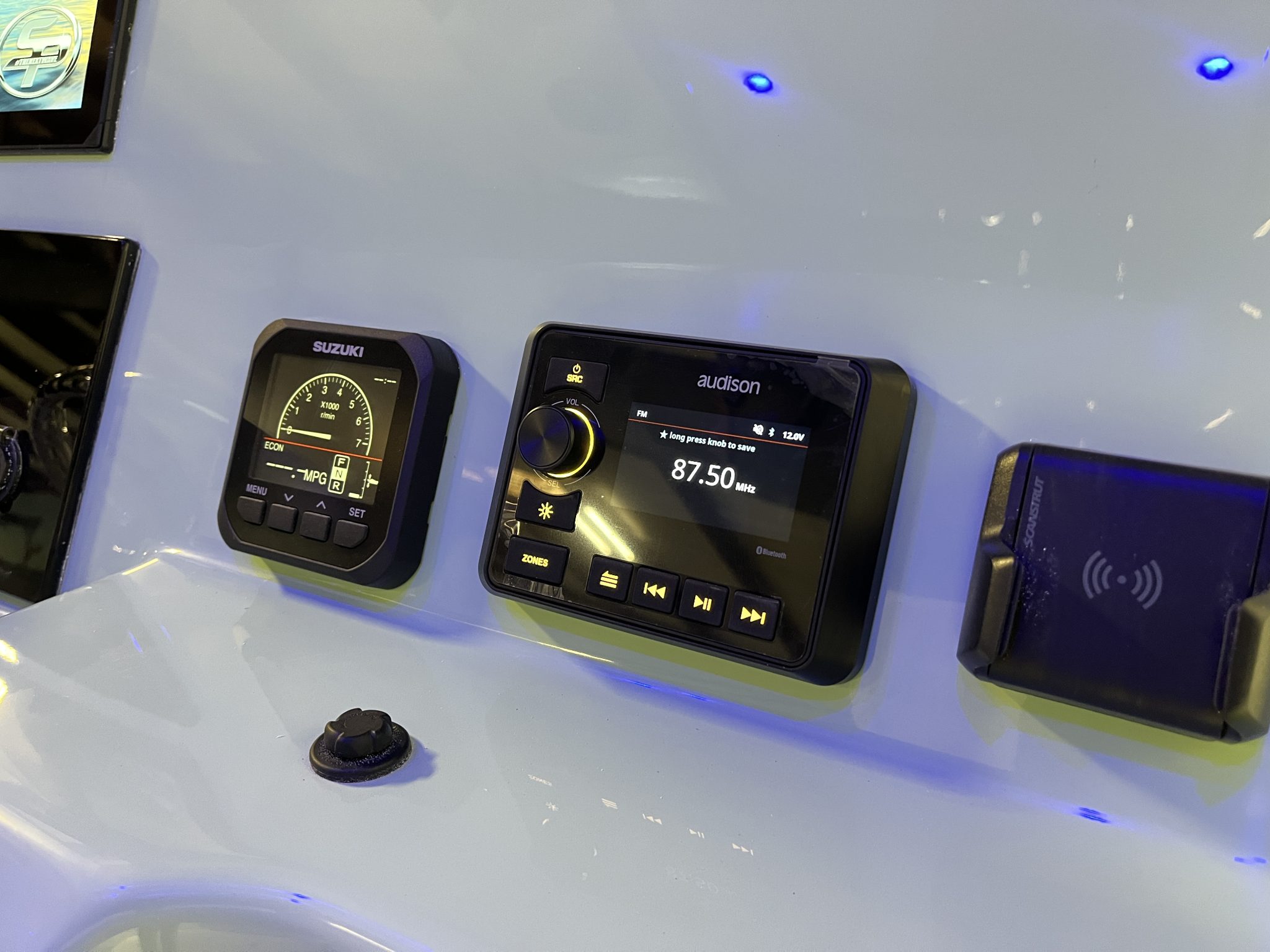 With its efficient hull and Suzuki 300 outboard, fuel economy and cruising speed come together in balance. Owners will find it easy to hold plane at moderate speed, making long cruises or tow sessions both comfortable and cost-effective. Hydraulic steering and trim tabs assist with responsiveness in varying water conditions. The boat’s overall handling inspires confidence whether in coastal swell or the calmer environment of a freshwater lake.