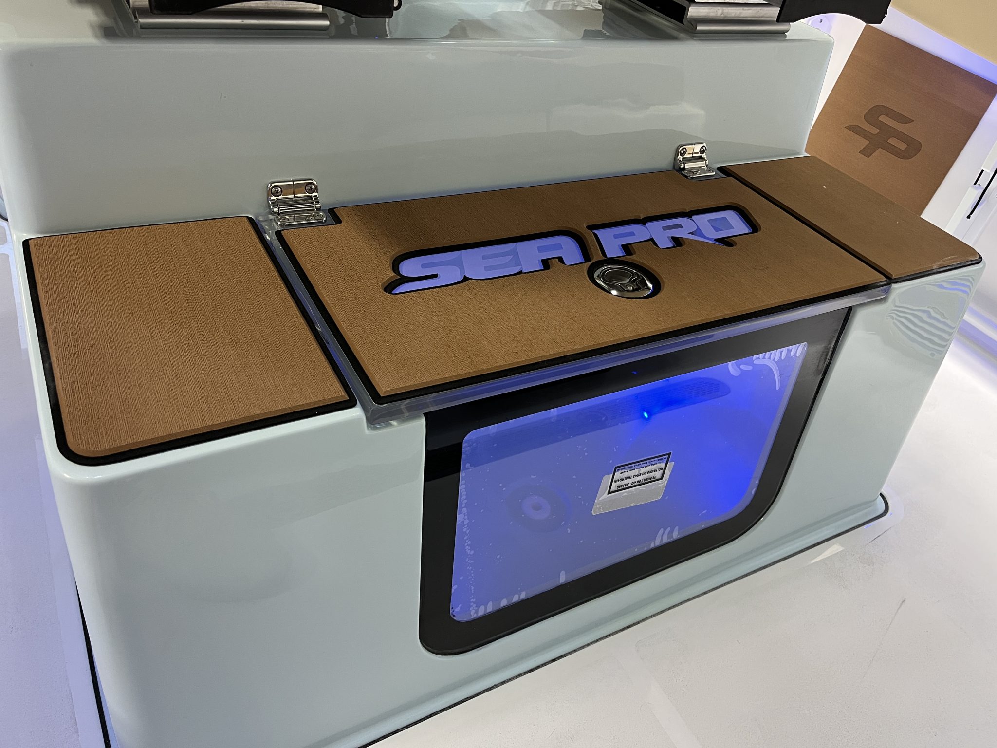 Sea Pro’s reputation for quality is evident everywhere you look. The helm features a clean, intuitive console design with high-visibility instrumentation that keeps control effortless. Details like insulated storage, self-bailing decks, and durable upholstery materials mean this boat isn’t just built for comfort—it’s built for years of reliable fun. The ride is smooth and composed, with hull lines engineered to slice through chop while keeping passengers dry.