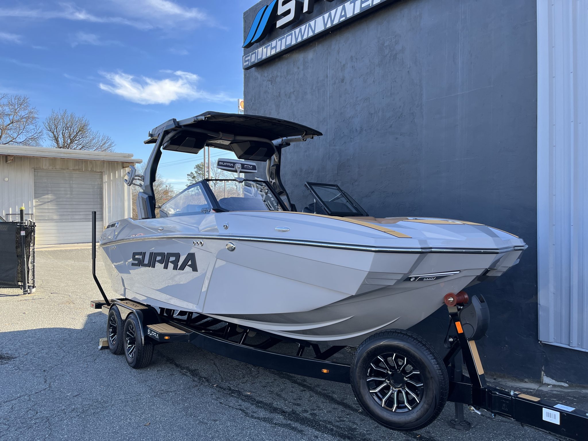 DEMO boat sold as NEW was used in-house, includes full 5-year warranty! The 2025 Supra SA 400 stands as one of the most capable 22.5-foot wake boats on the water, engineered for those who demand precision, comfort, and unmatched surf control. Power comes from an Indmar Raptor 6.2L 400 engine, delivering 400 horsepower through a V-drive configuration designed for perfectly weighted wakes and consistent pull. Supra’s advanced systems work seamlessly to create ideal wave shapes whether you’re wakesurfing, wakeboarding, or towing an all-day crew across your favorite lake. Built on Supra’s legendary SA hull, this boat combines integrated tech, refined handling, and efficiency that inspires confidence behind the wheel. Performance is amplified by the Raptor’s torque-rich response and Supra’s precision ballast and surf systems. Riders can dial in customized waves with intuitive touchscreen control, adjusting speed, ballast weight, and surf side in seconds. Whether fully loaded with friends or chasing world-class surf sets, the SA 400 maintains balance and pull that feel effortless. Measuring 22.5 feet with an 8.5-foot beam, it provides stability and confidence in all water conditions. The 16-person capacity makes it an ideal choice for families or crews who love to make every lake day a shared experience. Inside, the cabin pairs modern luxury with purposeful design. Thoughtful details like premium upholstery, deep storage, and ergonomic seating allow comfort without clutter. The captain’s area integrates Supra Command technology, presenting key performance, mapping, and wave settings through a sleek touchscreen that matches the boat’s modern aesthetic. The layout ensures every passenger enjoys the ride—featuring wraparound lounge seating, stadium-style viewing, and plenty of space for the day’s gear. SouthTown Watersports in Charlotte, North Carolina, proudly offers the 2025 Supra SA 400 as part of their premium wake and surf lineup. Customers across Lake Norman, Mountain Island Lake, and the Carolinas can see firsthand how Supra’s craftsmanship and innovation come together in this flagship 22-foot design. From serious riders pushing progression to families building lake memories, the SA 400 delivers the mix of performance and comfort that makes every day on the water unforgettable. Priced at $199,995, this new model represents the strength, technology, and reliability that have made Supra one of the most trusted names in tow boats.