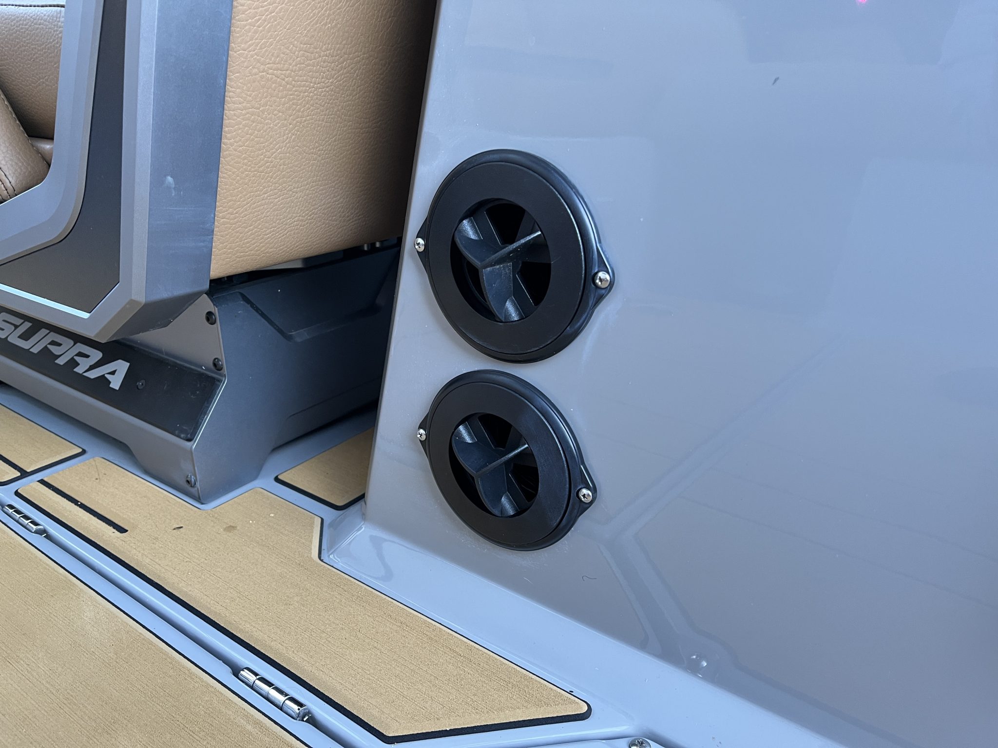 Supra’s Swell Surf System continues to be one of the industry’s most respected platforms for shaping waves. It delivers fully adjustable ramp angles and curl size, creating endless possibilities for progression. Riders switching sides or weight loads can expect consistent, clean wave faces and balanced push no matter who’s in the boat. The ballast capacity, integrated through multiple subfloor tanks, can be filled or drained automatically within minutes.