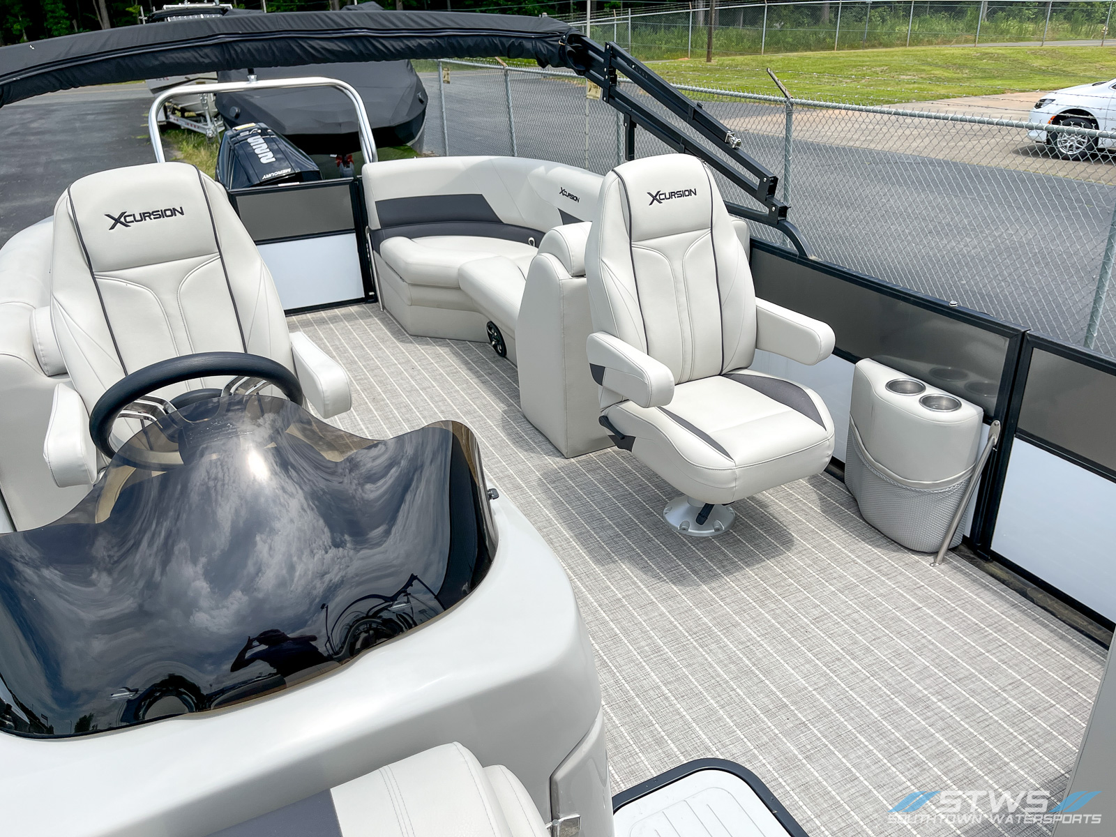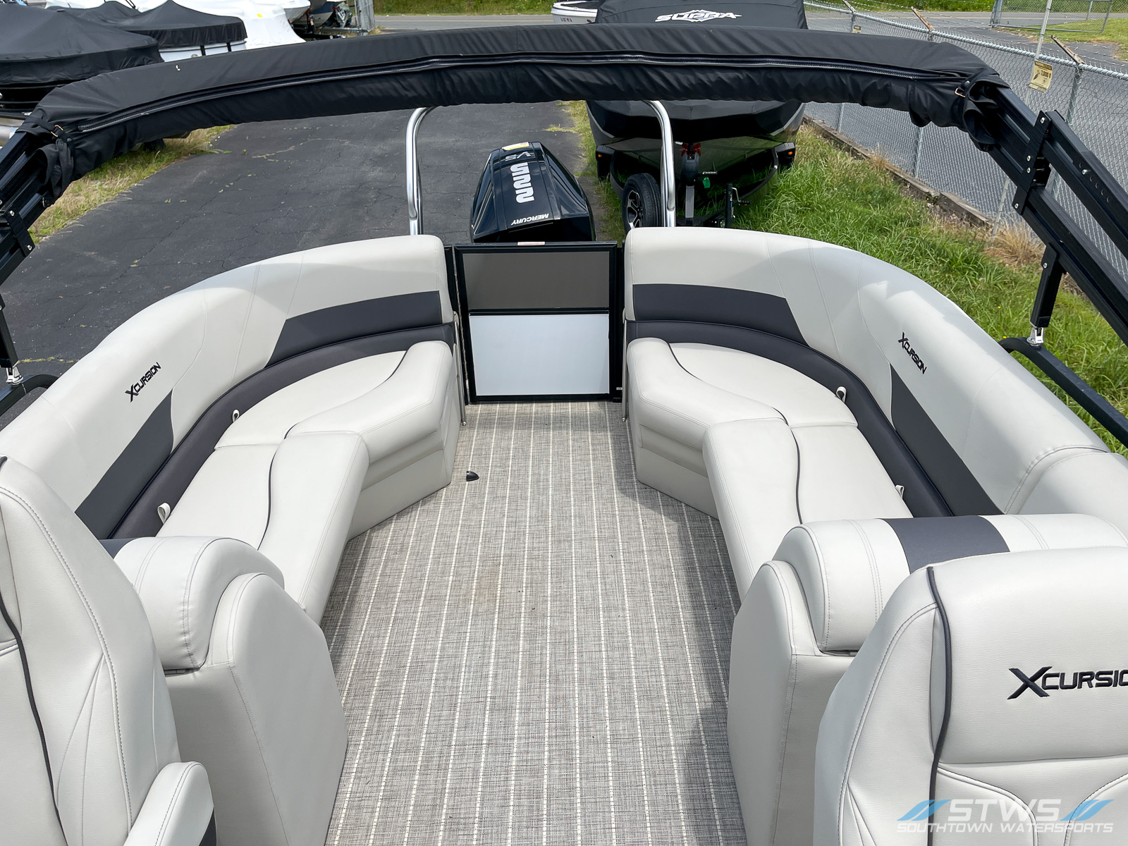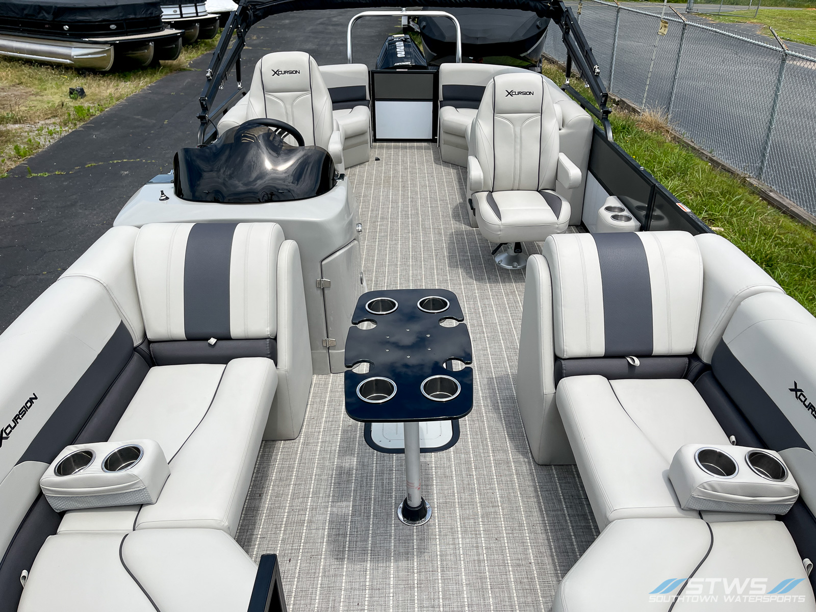 The 2023 Xcursion RFX 243 brings a smart blend of style, comfort, and performance to the water. Built for those who love spending days cruising or towing friends on boards and tubes, this 24-foot pontoon offers generous deck space and premium seating arrangements. With room for up to 11 passengers, it’s easy to gather the crew and make every lake day feel like a special occasion. This model, offered new by SouthTown Watersports in Charlotte, North Carolina, reflects Xcursion’s dedication to modern comfort, smooth handling, and efficient design. At the heart of the RFX 243 sits a Mercury 225 FourStroke XL — a reliable, quiet, and clean-running outboard known for its balanced power and low-maintenance operation. Its combination of torque and fuel efficiency makes it just as suitable for wake sessions as it is for lazy afternoon cruises across Lake Norman or Mountain Island Lake. The hull’s width of 8.5 feet contributes to exceptional stability while underway, and when you stop to float or anchor, it feels steady and secure — perfect for swimming, lounging, or enjoying music on deck. Inside, the layout showcases plush, high-backed lounge seating, flexible rear-facing loungers, and clever storage solutions that keep your gear organized and dry. Every inch of the design reflects a thought for real-world usability — from the helm’s ergonomic layout with clear instrumentation to the easy boarding gates that make hopping in and out of the water quick and convenient. The soft-touch flooring, stainless hardware, and attention to finish details add a refined touch that complements its robust build quality. Whether you’re a family looking for the perfect weekend retreat or a group of friends wanting a reliable platform for water sports, the Xcursion RFX 243 fits both moods seamlessly. It’s equally at home handling tow sports as it is serving as your floating lounge for sunset cruises. Visit SouthTown Watersports in Charlotte to see how the RFX 243 redefines comfort and performance for a 24-foot pontoon. Priced at $67,999, this new model offers an outstanding blend of value, capability, and long-term enjoyment on North Carolina’s most scenic lakes.