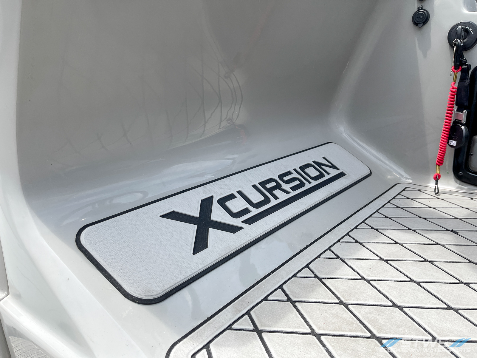 Xcursion’s RFX series focuses on real-world recreation. Whether you’re out wakeboarding, tubing, or surf cruising at a relaxed pace, the 243 adapts with ease. Its solid stance in the water makes it an excellent choice for families or groups who share different interests — you can be towing a rider one moment and serving lunch to your guests moments later. On lakes like Norman or Wylie near Charlotte, this model handles local conditions beautifully, offering both stability at idle and responsive power on open runs. Even on choppier afternoons, the wide beam and well-balanced toon design maintain confidence and comfort.