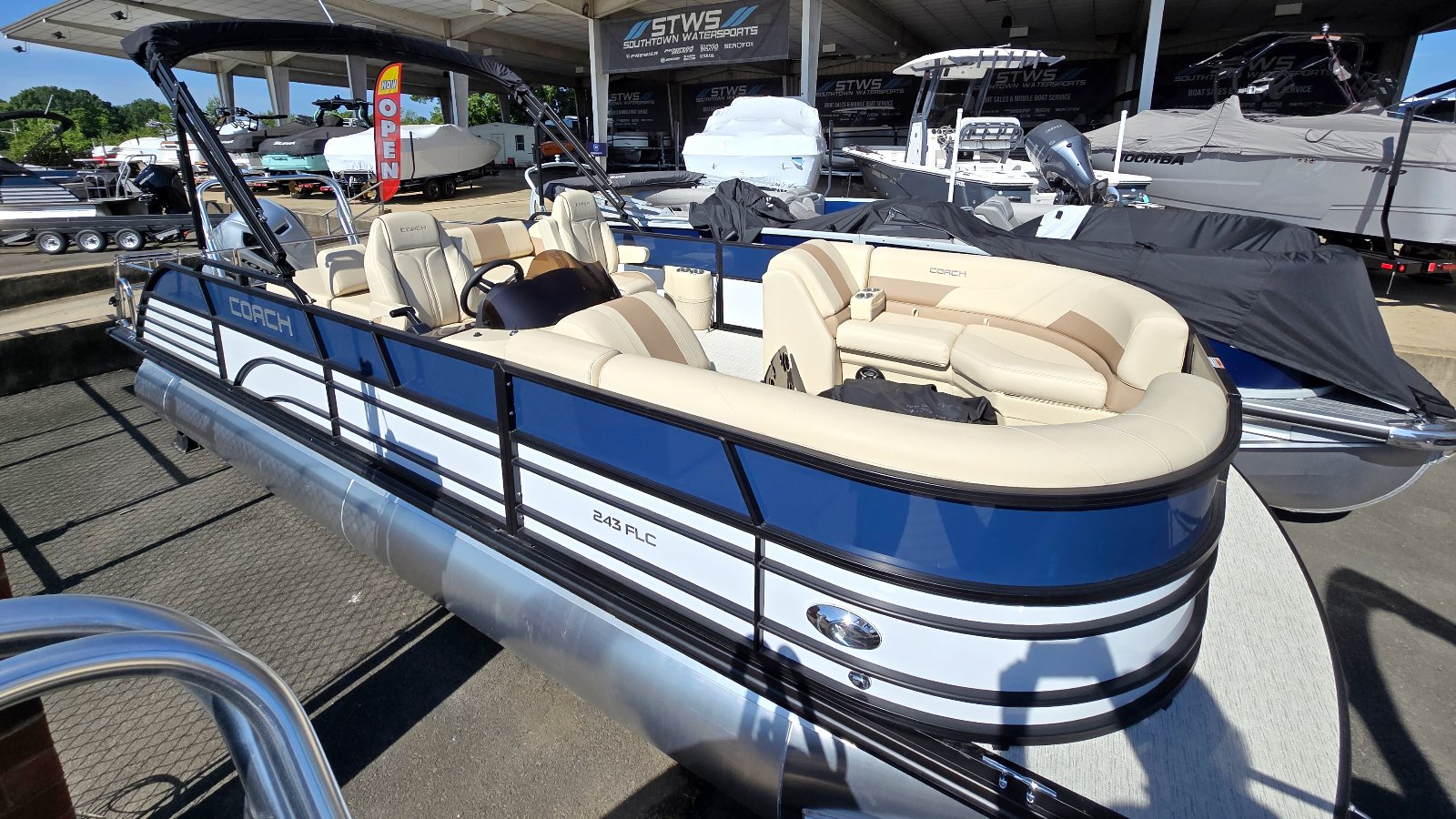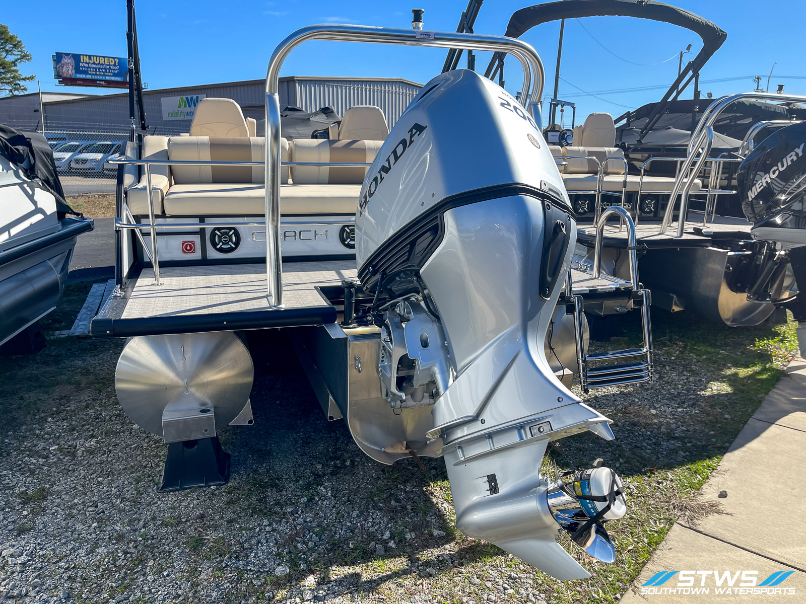 Step aboard the 2023 Coach 243 FLC and experience what thoughtful design, performance, and comfort can do for your weekends on Lake Norman. SouthTown Watersports in Cornelius, North Carolina proudly presents this 24-foot pontoon, built to deliver smooth handling, easy acceleration, and a layout tailored for families and friends who want to make the most of every moment on the water. With room for 11 passengers and powered by a 200HP Honda BF200D outboard, this model blends strength and silence in equal measure, making it a dependable performer for leisurely cruises, tubing, or early morning runs to your favorite cove. The Coach 243 FLC is more than a stylish pontoon — it’s an entertainer’s platform. At 102 inches wide, there’s plenty of deck space for moving around comfortably, and the seating is built with plush, supportive cushions that promise hours of relaxation. The forward lounges stretch out beautifully for sunbathing, while the rear section features an easy-to-access swim platform, perfect for dropping in your board or taking a midday dip in Lake Norman’s gentle water. High-end materials, elegant upholstery, and solid construction give the 243 FLC a premium feel that stands out both dockside and underway. Underneath its sleek exterior, the 2023 Coach 243 FLC demonstrates real capability. The BF200D delivers dependable thrust for cruising or towing, while fuel efficiency keeps you out on the lake longer. Whether you’re gliding past Ramsey Creek or throttling through open stretches toward the main channel, the ride remains steady and comfortable, even with a full group on board. The helm layout is intuitive and clean, offering confident control and visibility so you can drive with ease. Located just minutes from the shores of Lake Norman, SouthTown Watersports at 18919 W Catawba Ave, Suite B, Cornelius, NC, has built its reputation on pairing the region’s boaters with high-quality models and expert knowledge. To learn more about the 2023 Coach 243 FLC, stop by or reach out to (704) 993-8446. With its mix of comfort, size, and power, this pontoon is ready to help you launch a new season of memories on North Carolina’s favorite lake. —