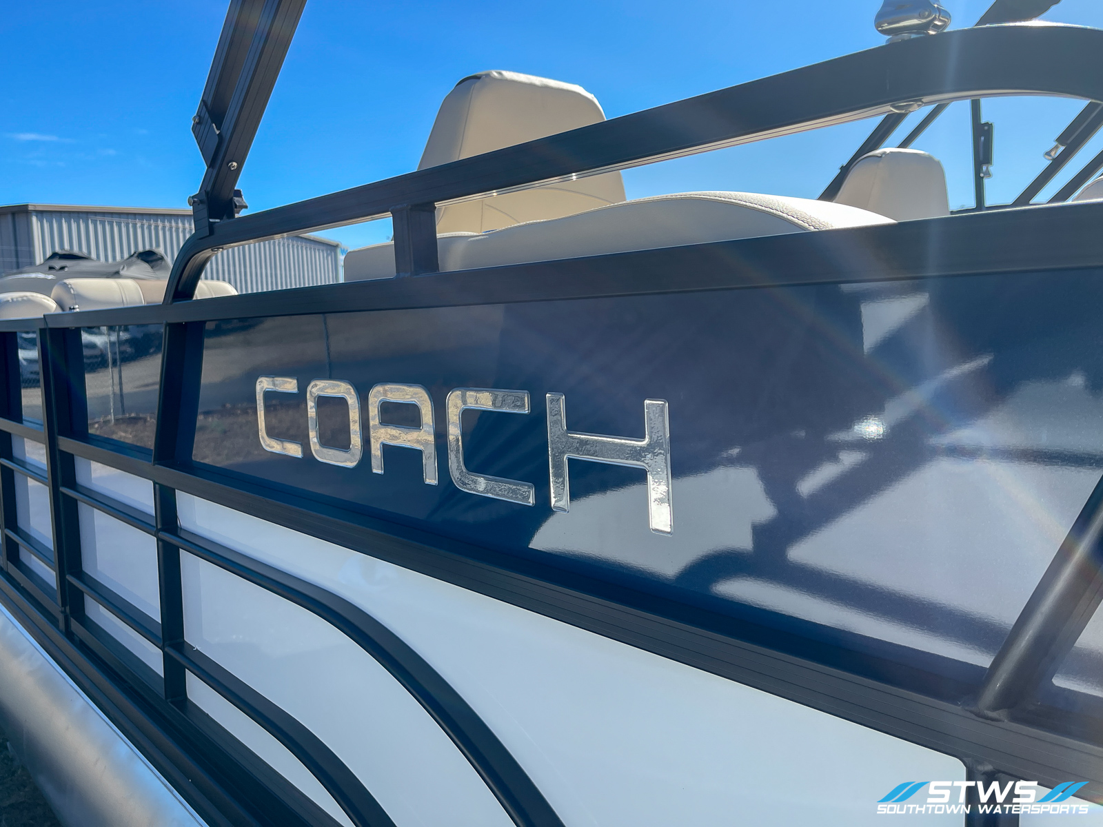 The 2023 Coach 243 FLC was designed for those who view the lake as their weekend retreat — a place to relax, recharge, and share time on the water. Measuring a full 24 feet with a 102-inch beam, this model offers stability and space, allowing families and friends to spread out comfortably without compromise. The Coach brand has long been known for delivering high-value pontoons that combine luxury features with durable build quality, and the 243 FLC continues this tradition with a refined blend of strength and comfort suited perfectly for life around Lake Norman.