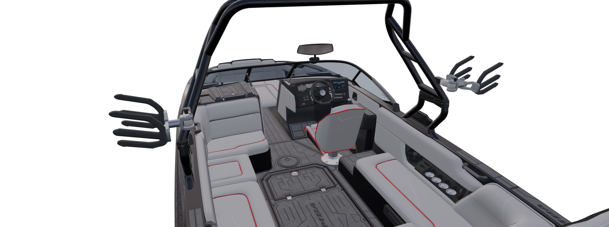 The upgraded G6 Ballast System with six pumps brings faster fill and drain times, giving you more control over fine-tuning your wave. Combine that with ZeroOff Cruise, and you’ll have consistent, competition-grade pulls every single time. Onboard, great sound adds even more energy with a 12-inch subwoofer and amplified cockpit speakers that deliver clear, rich audio across the boat. The driver’s seat is premium in both comfort and visibility, while thoughtful additions like the transom mount entry step and sundeck flip-up backs make transitions from lounge to water seamless.