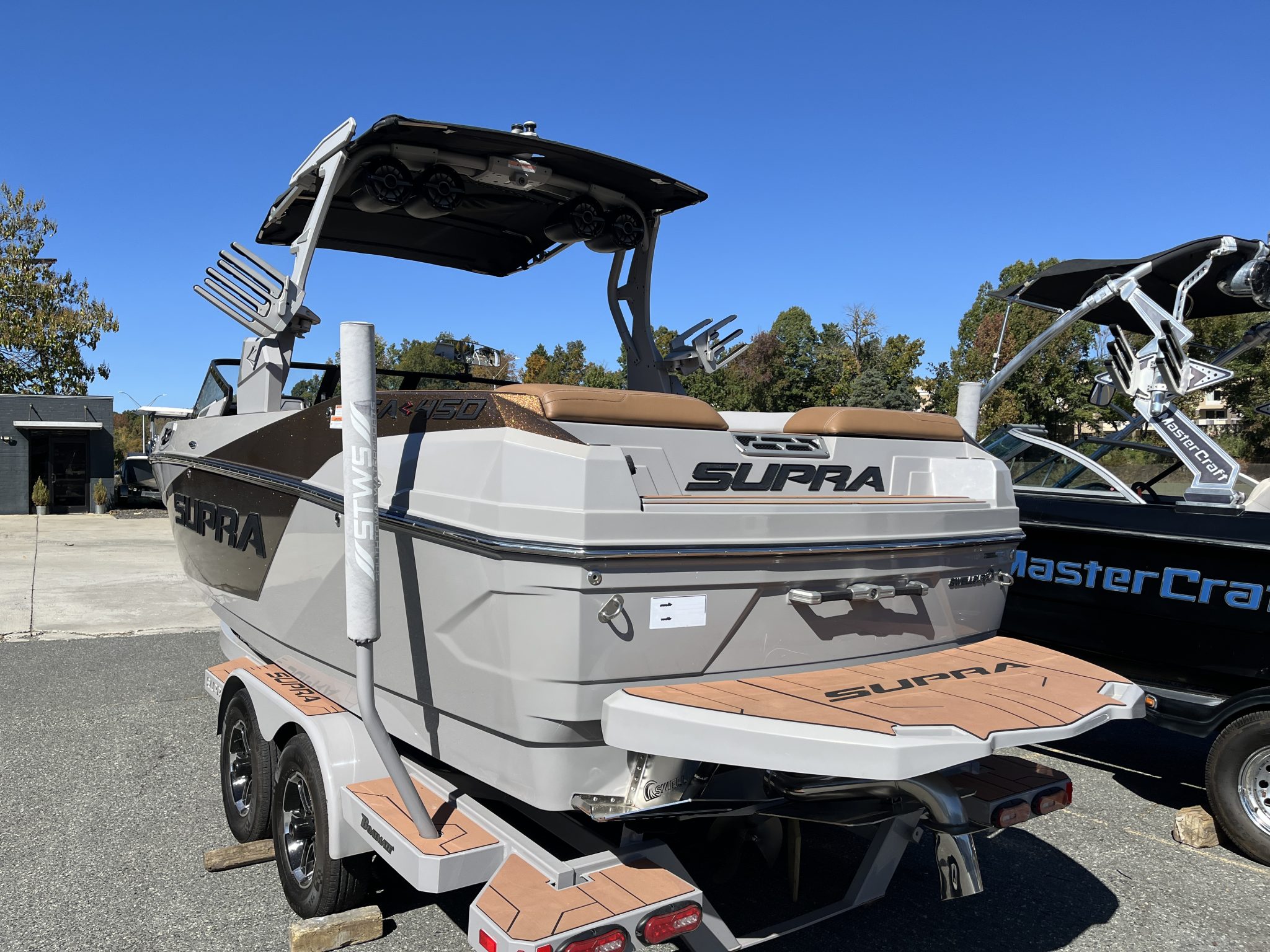 This Supra SA 450 is available now at SouthTown Watersports – Lake Norman, located at 18919 W Catawba Ave Suite B, Cornelius, North Carolina 28031. The location serves Lake Norman and nearby water destinations, offering sales, service, and on-water demos by appointment. Contact the team by calling (704) 993-8446 to discuss details, arrange a viewing, or learn more about current inventory. Frequently Asked Questions ### Who is this boat for? This boat is designed for riders who demand professional-level surf performance combined with luxury comfort. Families and groups who spend long days on the lake will find it perfect for both recreation and progression in wakeboarding or wakesurfing. ### What problem does this boat solve? It bridges the divide between high-end surf performance and passenger-friendly comfort. You get precision surf systems and competition-grade wakes without losing space or usability for family fun. ### Why should I choose this model? The 2023 Supra SA 450 delivers exceptional wave shape, a powerful Raptor 6.2L engine, and high-end comfort that stands out in its category. Its combination of reliability, styling, and ride quality makes it a top choice among serious lake-goers. ### How is it to own long-term? Supra builds boats to last, and the Raptor powertrain is known for dependable operation and simplified maintenance. With proper upkeep, this SA 450 will deliver consistent performance for years with minimal issues. ### Where can I experience one? You can see and experience this boat at SouthTown Watersports – Lake Norman, located in Cornelius, NC. The dealership provides personalized walkthroughs and on-water demonstrations by appointment. ### What makes it different from competitors? Compared to similar-sized performance boats, the Supra SA 450 features an advanced surf control system, luxurious materials, and thoughtful ergonomics designed to enhance both driving and riding. ### Can I schedule a test drive? Yes, test drives can be arranged through SouthTown Watersports – Lake Norman by calling (704) 993-8446. The team will set up a convenient time for an on-water experience.