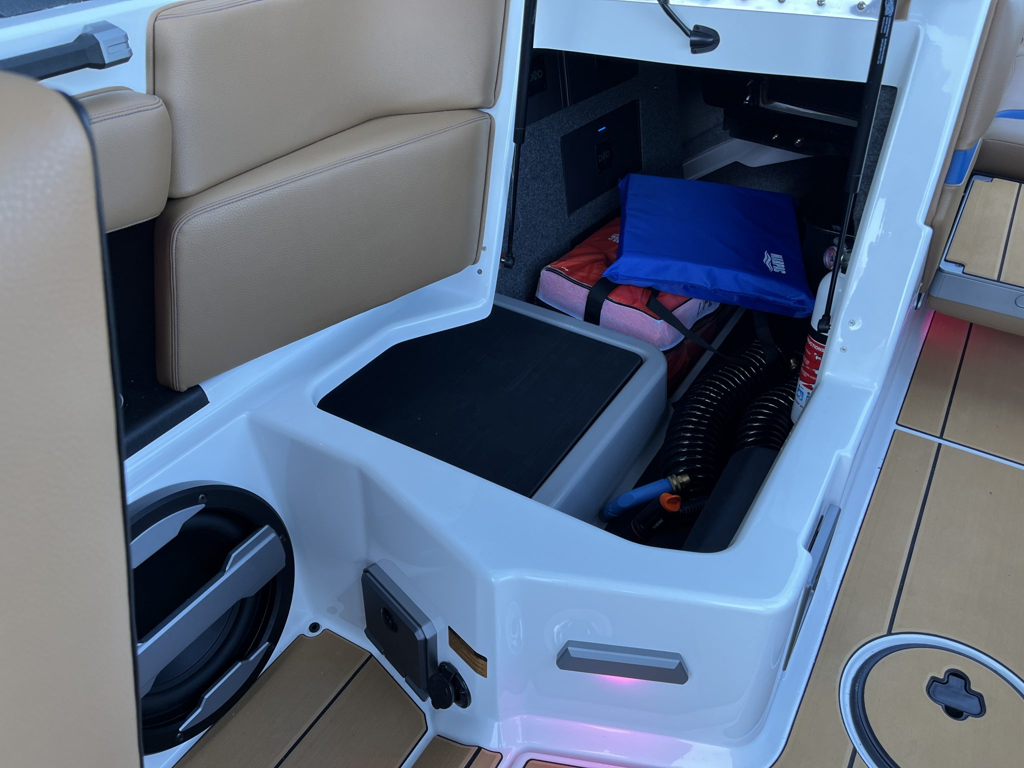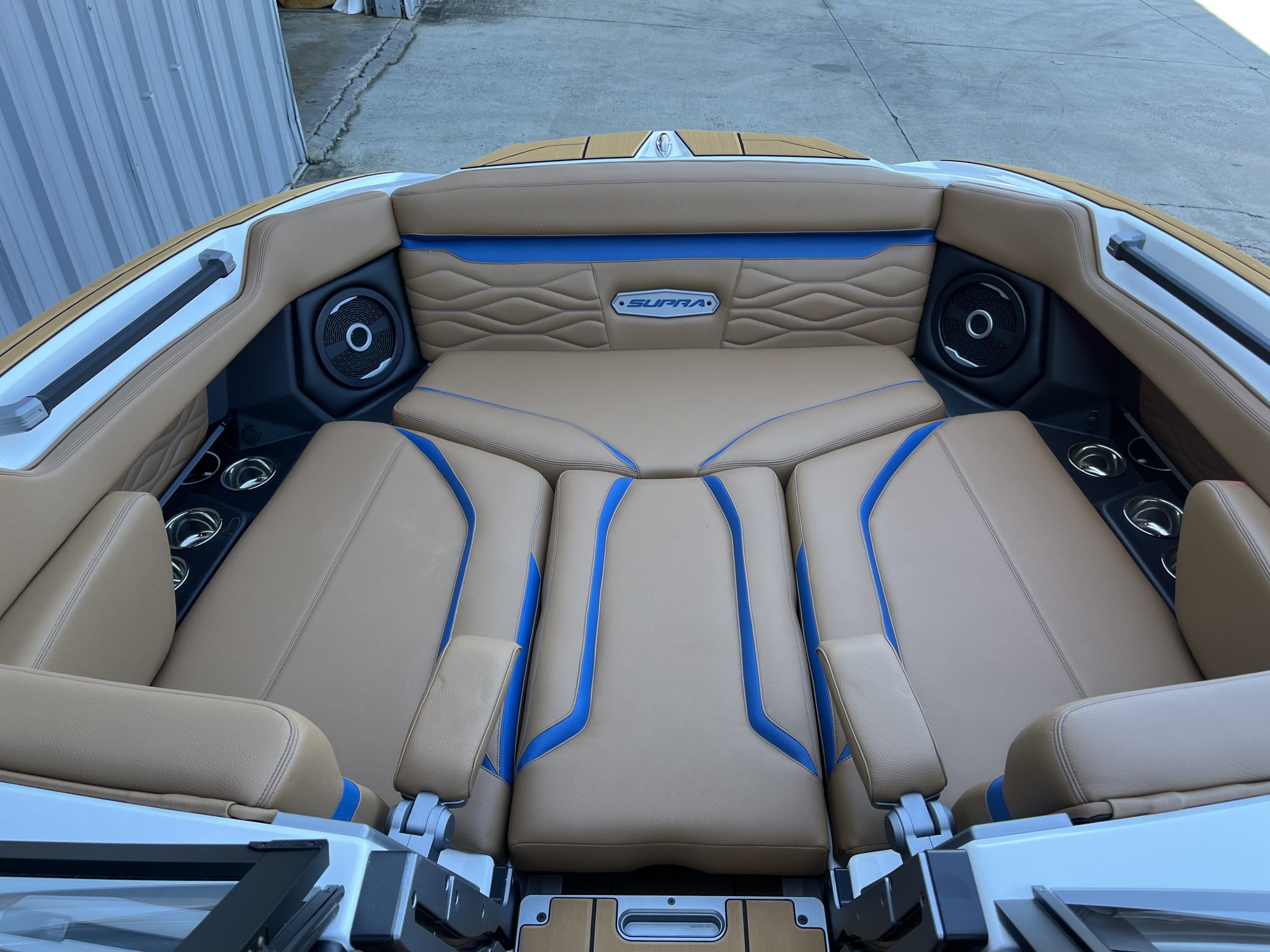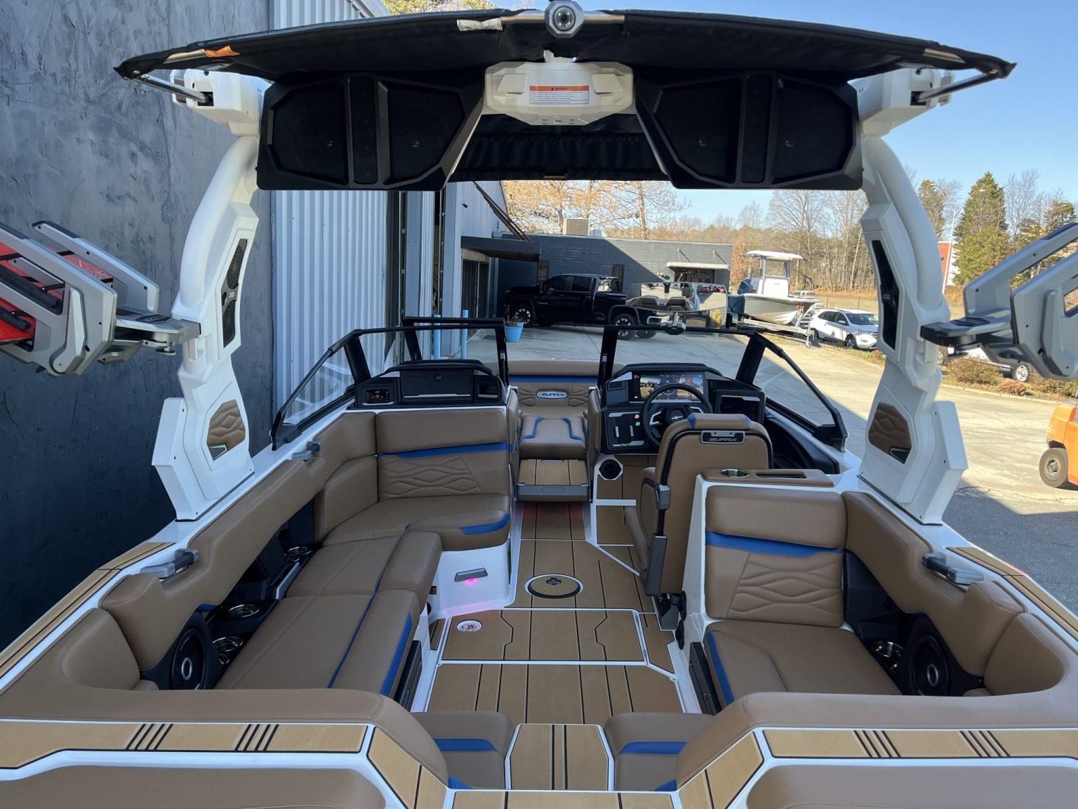 The stereo system, by JL Audio, arrives fully tuned at the factory with subwoofers and tower speakers, whereas many competitive models require costly add-ons to achieve similar output. The Supra SA 450 also includes features like Chill Tech vinyl for heat resistance—helpful for boaters spending long days on Lake Norman’s open surface.