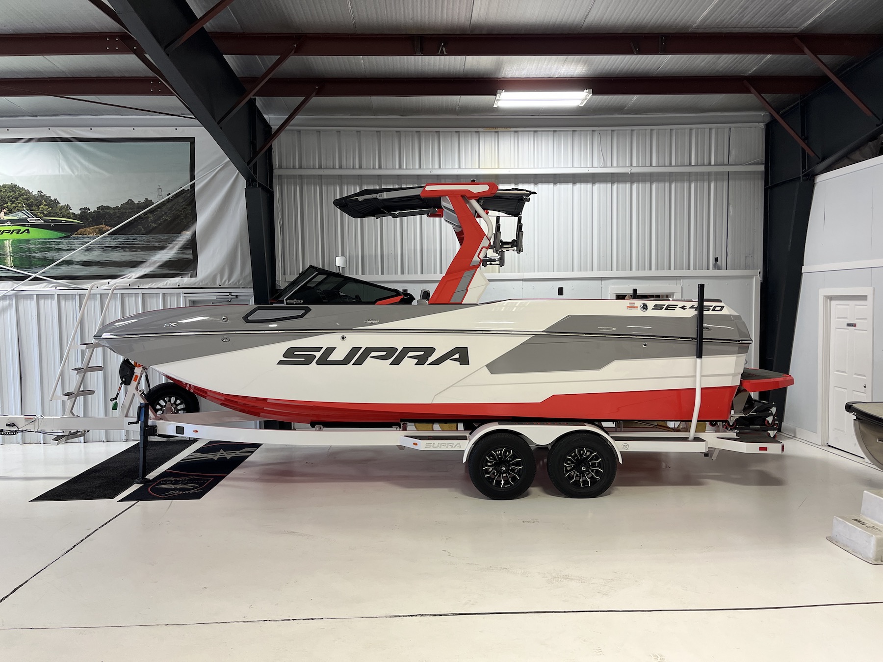 The 2025 Supra SE 450 combines bold design, powerful performance, and luxury craftsmanship in a 24.5-foot package built for serious wakeboarding and wakesurfing. Offered by SouthTown Watersports – Lake Norman in Cornelius, North Carolina, this high-performance towboat delivers 450 horsepower from its Raptor 6.2L engine, giving riders the clean, consistent wakes they crave. With room for up to 18 passengers, it’s designed for long summer days spent chasing perfect sets on Lake Norman’s wide open waters. Every inch of the SE 450 is engineered for control and comfort. A deep 102-inch beam creates stability and space, while the 28-inch draft ensures a confident ride even in choppy afternoon conditions. Inside, ergonomic seating and plush materials complement advanced helm controls, giving the captain total command over ballast, speed, and wake shape. Whether you’re loading up friends for surf sessions or hosting a sunset cruise, the SE 450 delivers a smooth, responsive experience that feels effortless. Supra’s Smart Plate system, Swell Surf technology, and precision-engineered hull design allow riders to customize wave length and height at the touch of a button. The Raptor engine’s 450 horsepower translates into crisp acceleration, perfect for riders who want instant lift out of the hole. Combined with high-capacity ballast, intuitive touchscreen controls, and premium sound integration, this SE 450 transforms Lake Norman into your private wake park. SouthTown Watersports – Lake Norman, located at 18919 W Catawba Ave suite b in Cornelius, NC, proudly offers this new Supra SE 450 at $239,995. Their expert watersports team welcomes you to experience the power, comfort, and technology that define Supra’s flagship model. To schedule a personal viewing or ask questions, contact SouthTown Watersports at (704) 993-8446 and let their crew help you explore wake performance like no other.