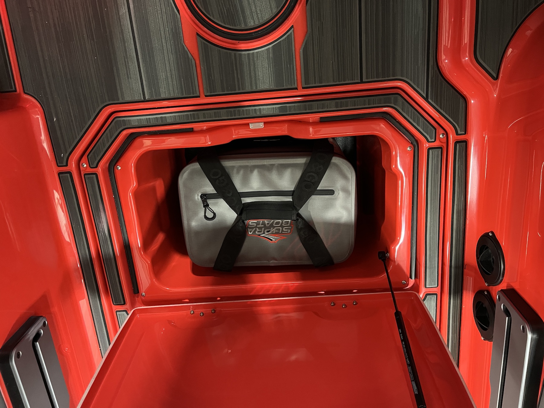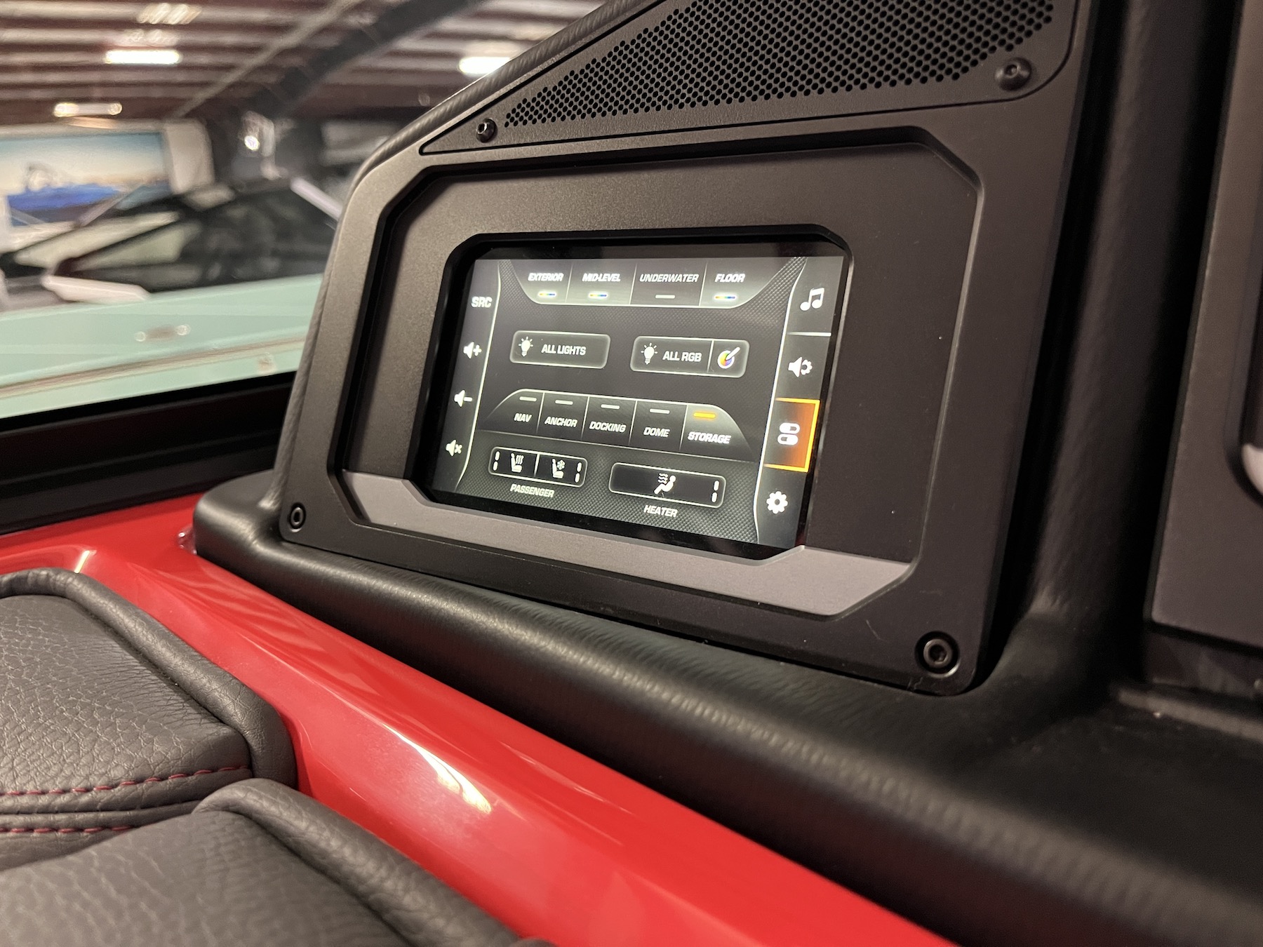 Technology defines Supra’s advantage. The SE 450 comes equipped with dual-touchscreen Vision Control displays, wireless phone charging, and a comprehensive Supra Command helm interface—features that are optional upgrades on many competitor models. The standard JL Audio premium sound system and built-in RGB interior lighting give the boat a fully connected, customizable environment.