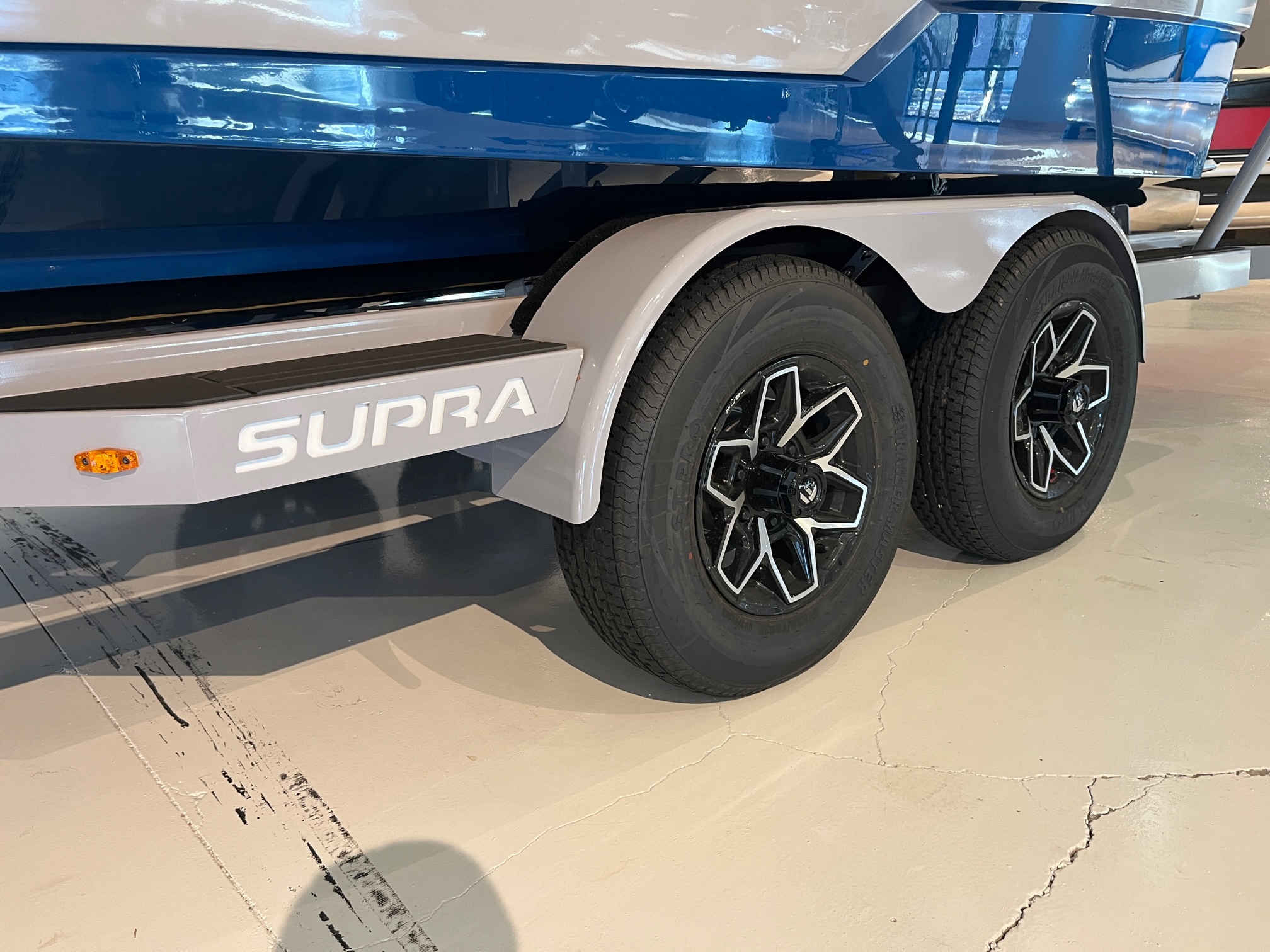Underneath the styling and technology lies serious craftsmanship. The 23.5-foot hull is engineered for maximum efficiency at surf speeds while maintaining stability in chop. The robust stringer system offers quiet, solid performance even at high towing loads. With a 28-inch draft, it balances depth with accessibility, allowing easy navigation around Lake Norman’s popular coves and sandbars. Supra’s attention to strength and quality means you’re investing in years of reliable performance whether your weekends bring you to tournaments, casual surf sessions, or long summer afternoons with friends.