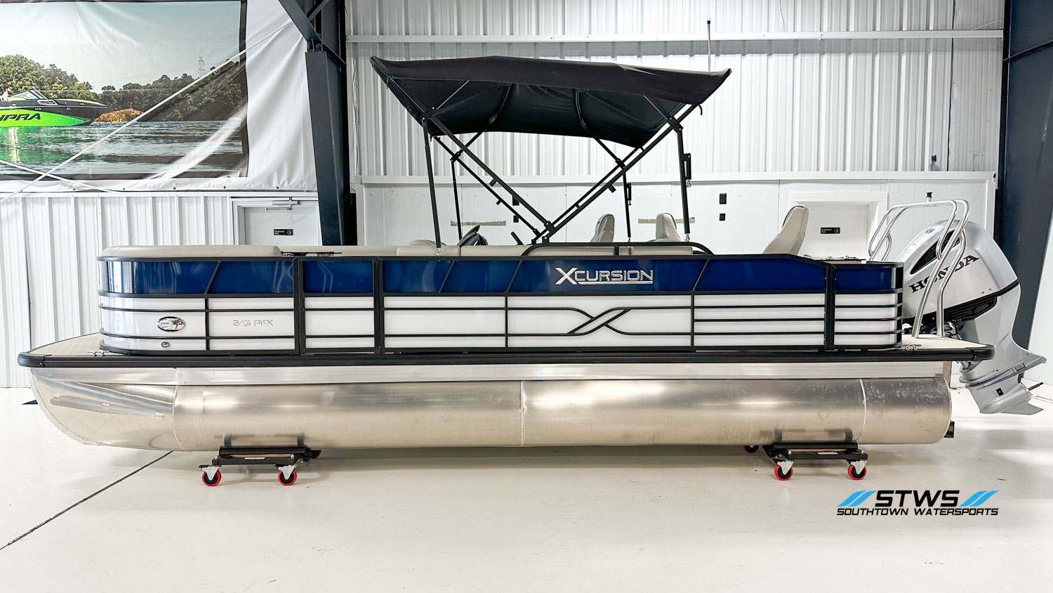 The 2023 Xcursion PFX 243 delivers the perfect blend of modern design, powerful performance, and everyday comfort, making it a standout choice for families and friends who love time on the water. At 24 feet in length with a spacious 102-inch beam, this pontoon is built for those who want to cruise, relax, and enjoy smooth handling whether on Lake Norman or any nearby waterway. SouthTown Watersports of Lake Norman—located at 18919 W Catawba Ave Suite B, Cornelius, NC—proudly offers this brand-new model, powered by a dependable Honda BF 200 DXRA outboard producing 200 horsepower of clean, efficient thrust. It’s the ideal setup for tubing, wakeboarding, or an easy afternoon ride with room for up to 11 passengers. The Xcursion PFX 243 shines with refined styling and functionality that fits every mood on the lake. Its luxurious seating layout encourages conversation and comfort, while the helm puts full control at your fingertips with intuitive instrumentation, full digital engine displays, and smooth steering response. The 200 HP Honda outboard delivers quiet, reliable power, keeping operation as effortless as your time on the water. Pair that with Xcursion’s quality construction—durable fencing, premium flooring, and robust pontoons—and you’ve got a 24-foot pontoon designed to handle both leisurely cruises and days filled with wake sports excitement. With a seating capacity of eleven, there’s room for everyone to join in the fun. Whether you’re pulling riders, lounging at anchor, or taking evening cruises on Lake Norman, the Xcursion PFX 243 provides an incredible mix of space, performance, and craftsmanship. Storage compartments are thoughtfully placed, keeping the deck clean and clutter-free for your gear, towels, and coolers. Every element, from the helm seat stitching to the stereo system, has been designed to make your day more comfortable and enjoyable. SouthTown Watersports – Lake Norman, your local expert in performance pontoons and surf boats, invites you to experience the PFX 243 firsthand. Visit or call (704) 993-8446 to see why this Xcursion model has become a favorite for families who want it all—looks, reliability, and performance in perfect harmony. The 2023 Xcursion PFX 243 proves that relaxation and adventure can share one boat. — **