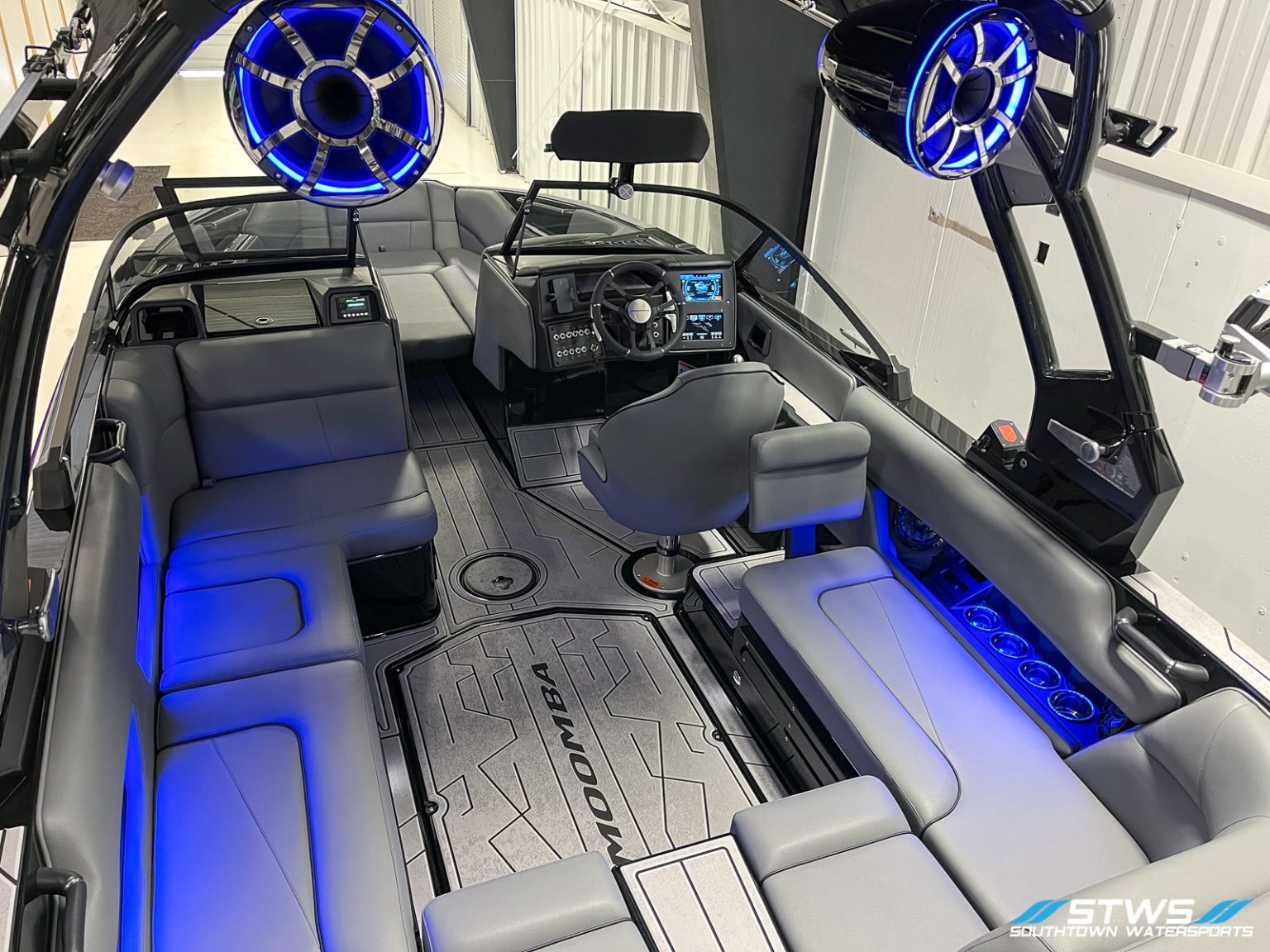 - Premium Sound System: Moomba delivers an exceptional audio experience on their boats thanks to WetSounds. This boat is equipped with a full WetSounds stereo system, including an amplified subwoofer, amplified cabin speakers, and amplified Rev 10 HD tower speakers.