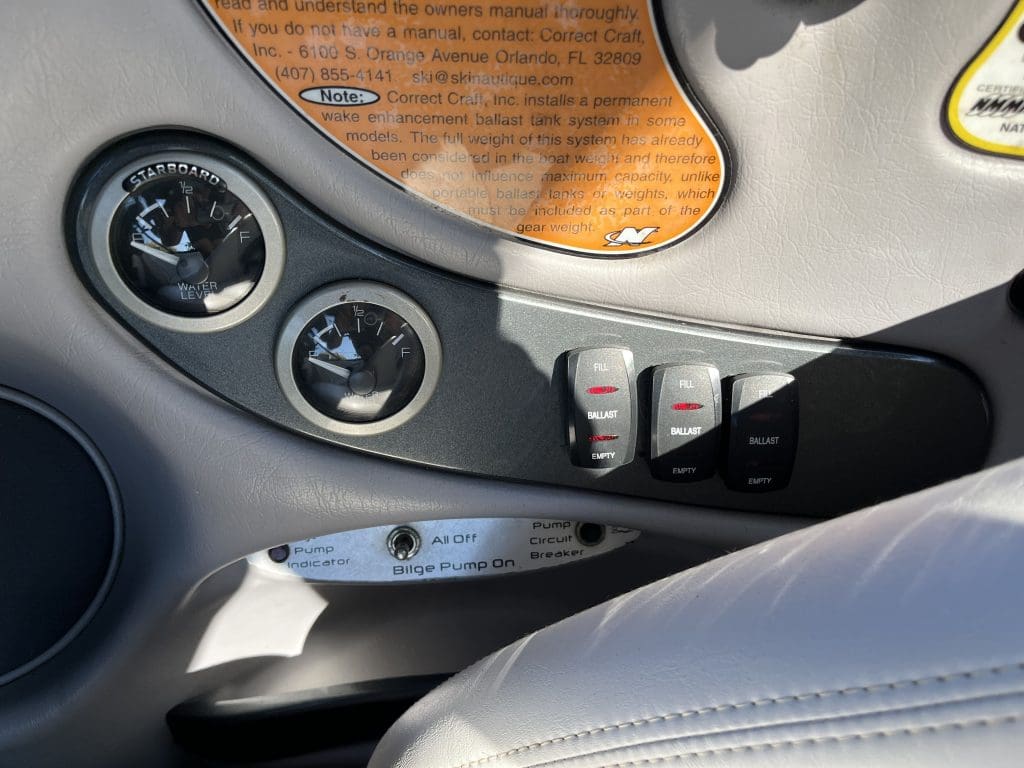 2002 Correct Craft Air Nautique 210 is water ready and powered by a PCM 5.8 HO inboard. Pushes 310hp, perfect for getting your toes wet in the watersports world! Once known as the best ski boat in the world, it throws a beautiful wake for skiing or wakeboarding. Throw the kids on a tube and have fun! Bow seating area with a filler cushion to make the bow into a lounging space. Bimini top for shade when needed. Trailer is included: go where you want to go, explore new lakes, rivers and start making memories today! Boat options: Front, center & rear ballast Fatsacs, surf exhaust, GPS Perfect Pass, Clarion bluetooth stereo, JBL tower speakers, bimini top, Flight Control tower with board racks, custom boat cover, dual batteries, galvanized trailer with bunk glides, retractable transom straps, LED lighted trailer guide-on posts, and LED bow docking lights Comes with everything you need to get on the water today!!