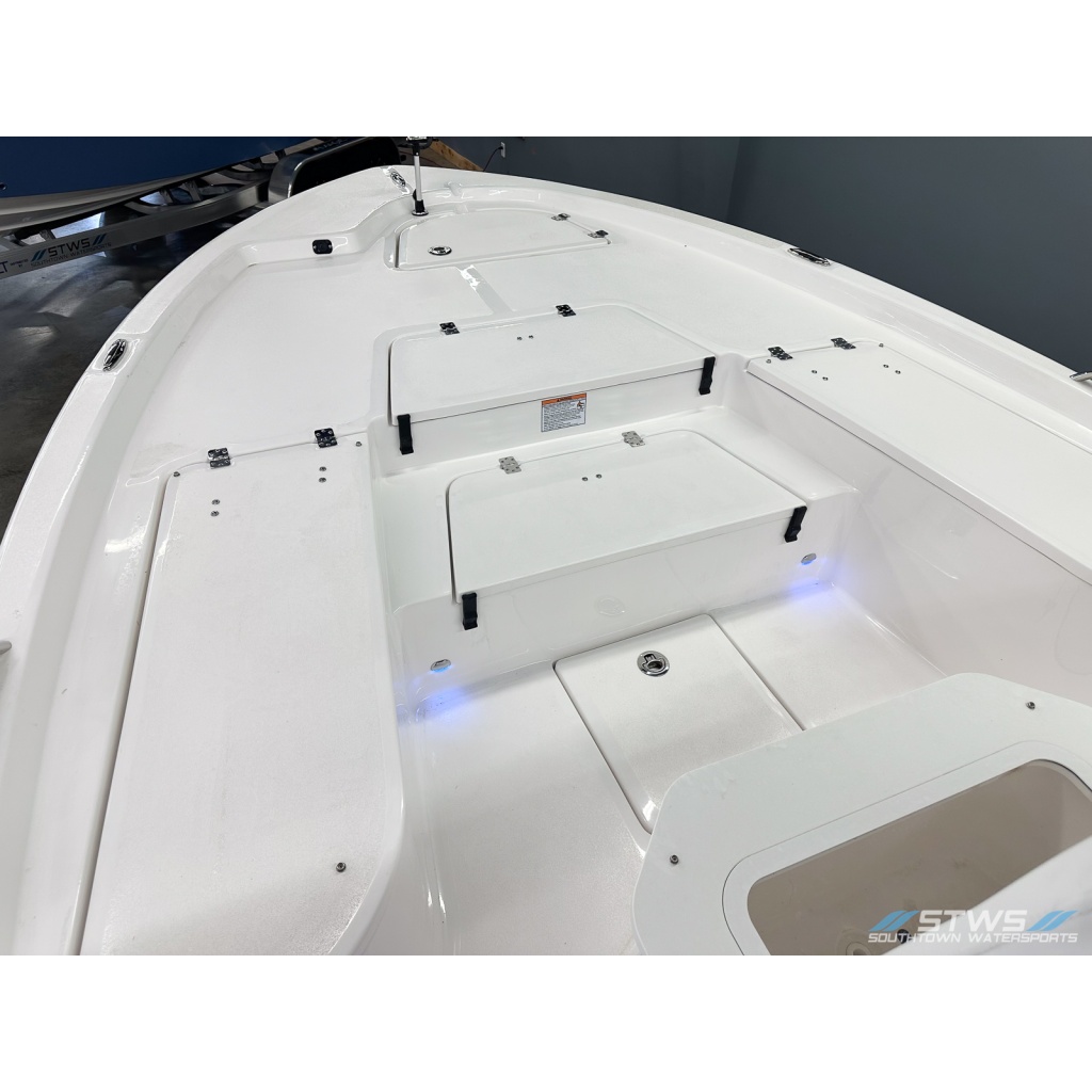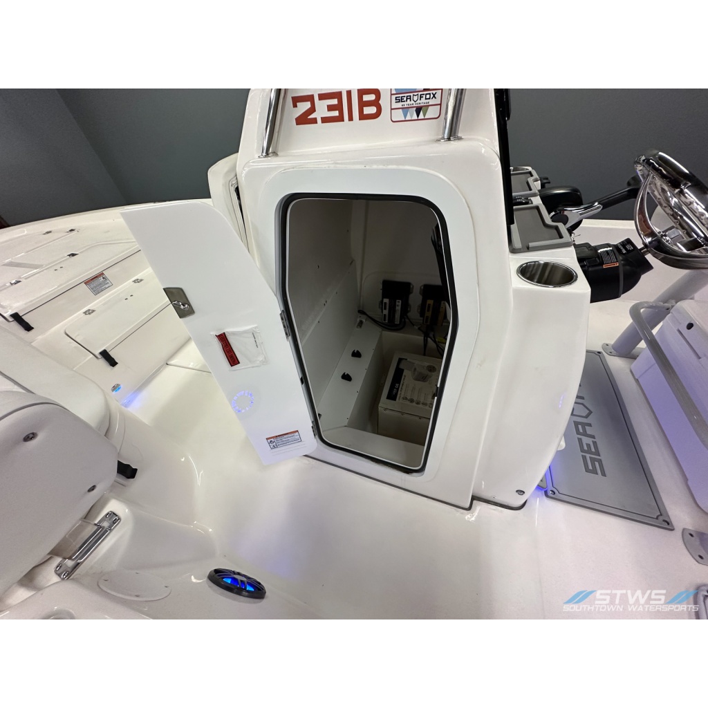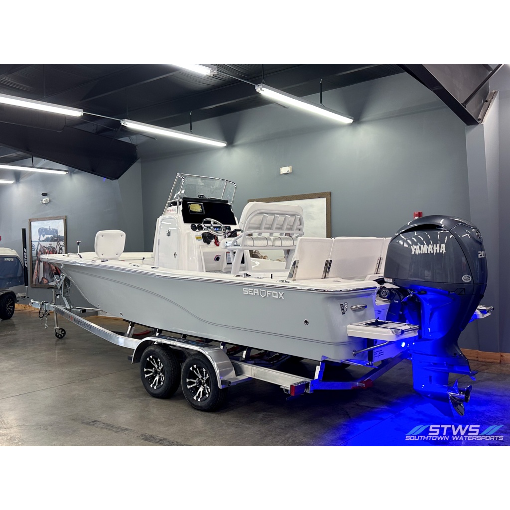 *Price includes trailer* The 2024 Sea Fox 231 Bay Fox is your gateway to unforgettable adventures on the water, now available in Charlotte, North Carolina. This versatile center console boat is engineered for both inshore fishing and offshore exploration, catering to anglers and families looking for a reliable, feature-packed vessel. Powered by a robust Yamaha 200 HP engine, the 231 Bay Fox delivers excellent power and fuel efficiency, ensuring a smooth and responsive ride in a variety of conditions. The hull design enhances stability and performance, making it ideal for cruising through shallow bays or tackling choppier offshore waters. With its large casting decks at both the bow and stern, this boat offers ample space for multiple anglers or extra room for family and friends to relax. Unlike many center consoles, this unit is designed for open-air enjoyment and does not include a T-top, making it ideal for sun lovers. It comes equipped with twin swim ladders for easy access to and from the water, perfect for swimming, snorkeling, or simply cooling off on a warm day. The boat’s practical layout includes features such as a digital dash for easy navigation, two large insulated fish boxes for keeping your catch fresh, and a 30-gallon livewell to ensure your bait stays lively throughout the day.