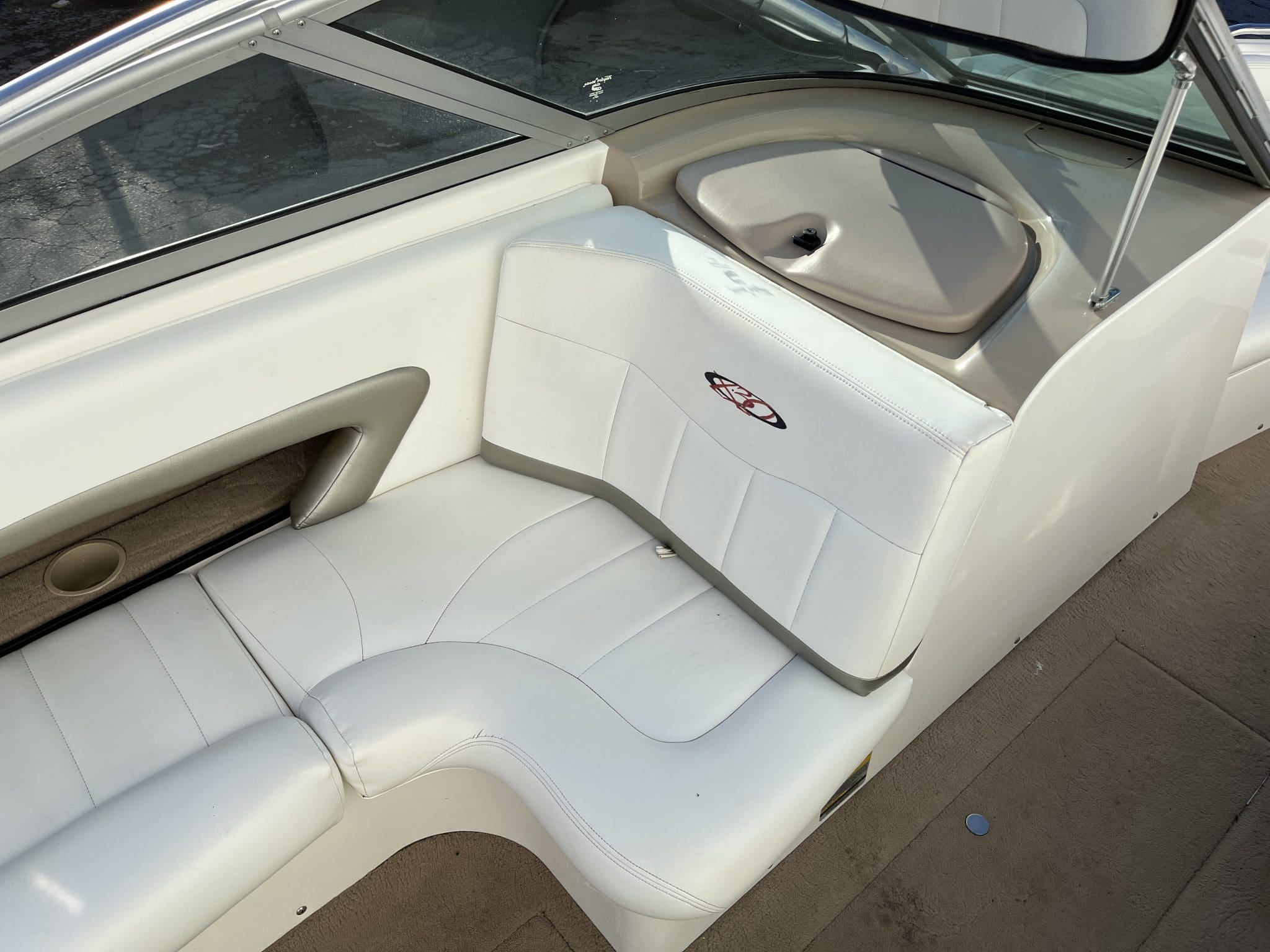 Few boats capture the roots of modern wake sports like the 2001 MasterCraft X30. Built on a 23-foot platform with a commanding 102-inch beam, the X30 strikes the ideal balance between space, performance, and reliability. Its red exterior and white interior bring timeless style, while the inboard design is known for crafting strong, consistent wakes that made MasterCraft a household name among wakeboarders and surfers. Located at SouthTown Watersports – Raleigh, this particular X30 has been maintained with care and shows only 386 hours on its powerful Indmar 5.7-liter LTR engine. Rated at 330 horsepower, it retains plenty of strength to pull riders of all levels while cruising comfortably with a full crew aboard. Whether you’re exploring the calm coves of Jordan Lake or spending a Saturday on Falls Lake, the X30 delivers a dependable ride and confident handling every time.