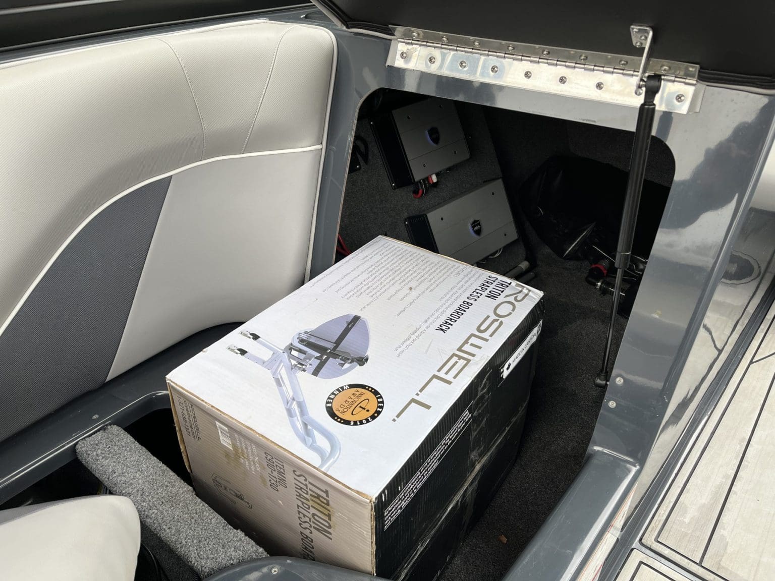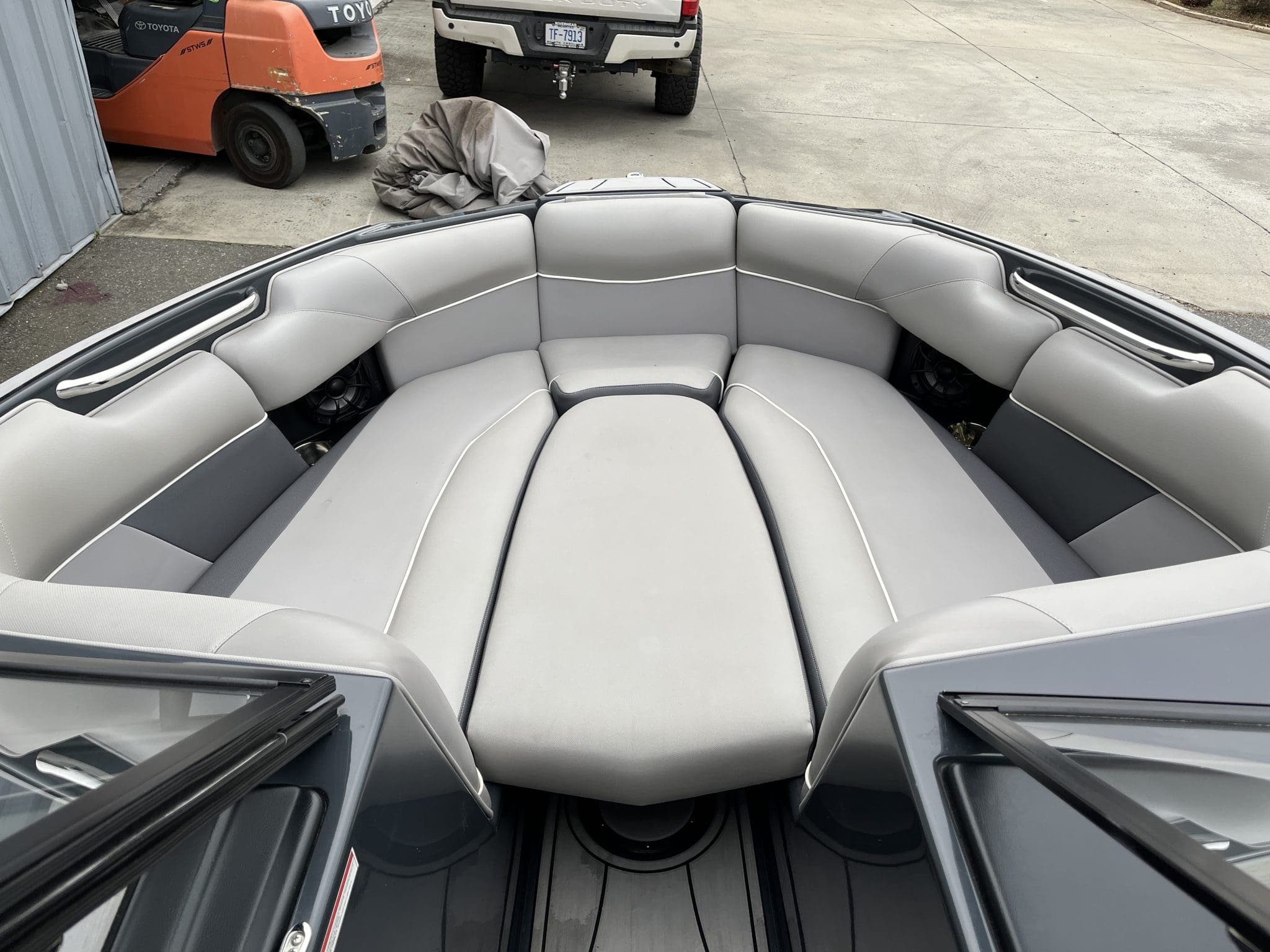Aboard, comfort meets clever design. The seating configuration is spacious and social, with high-quality materials and durable construction built for years of use. Triton Strapless Board Racks with Quick Release Swivels make stowing boards simple and secure, while the Full Boat Cover with Platform Cover helps keep the boat looking fresh between weekends. The subtle Metal Flake finish catches the sun just right, offering a premium look that turns heads wherever it’s moored.
