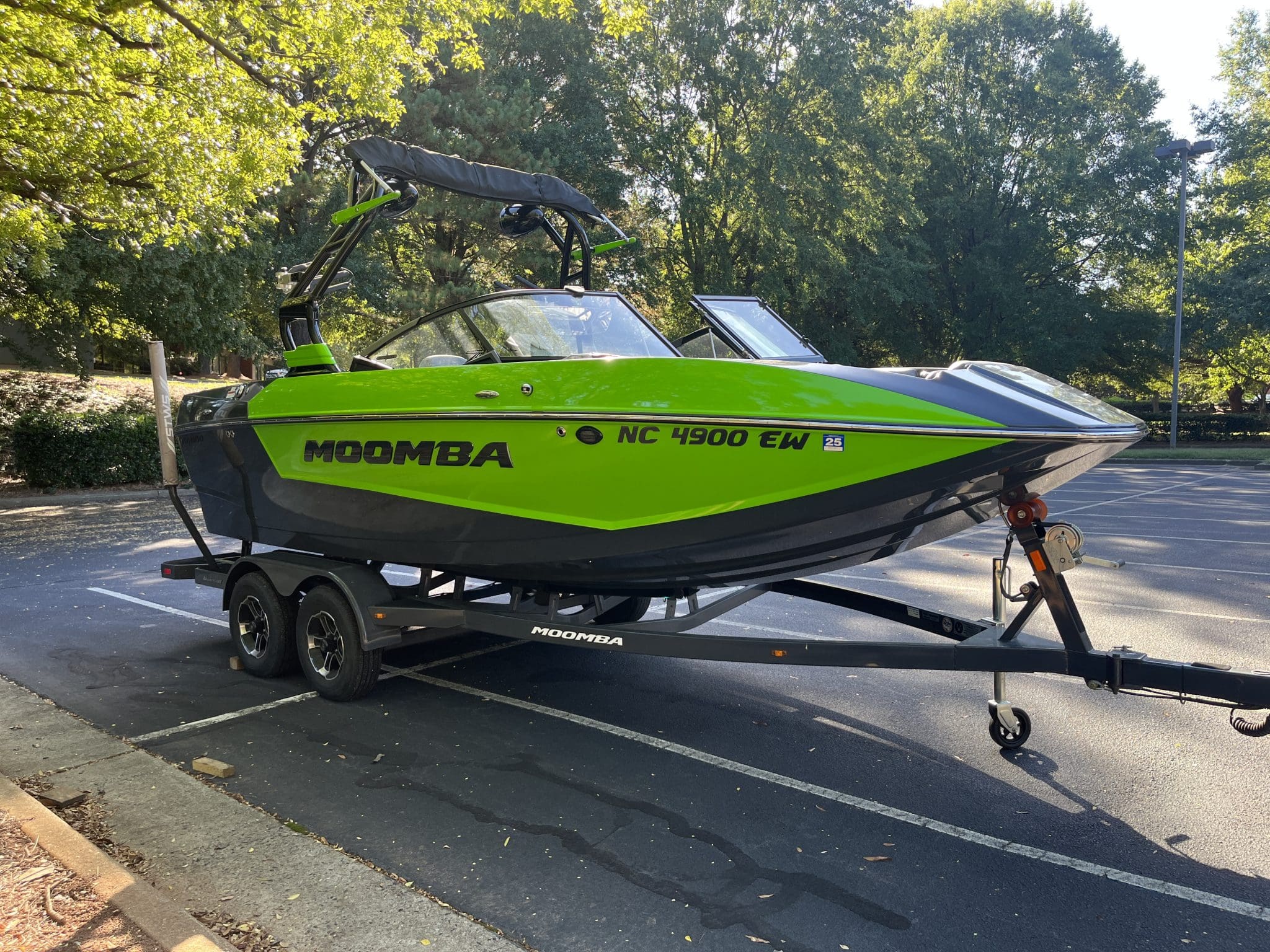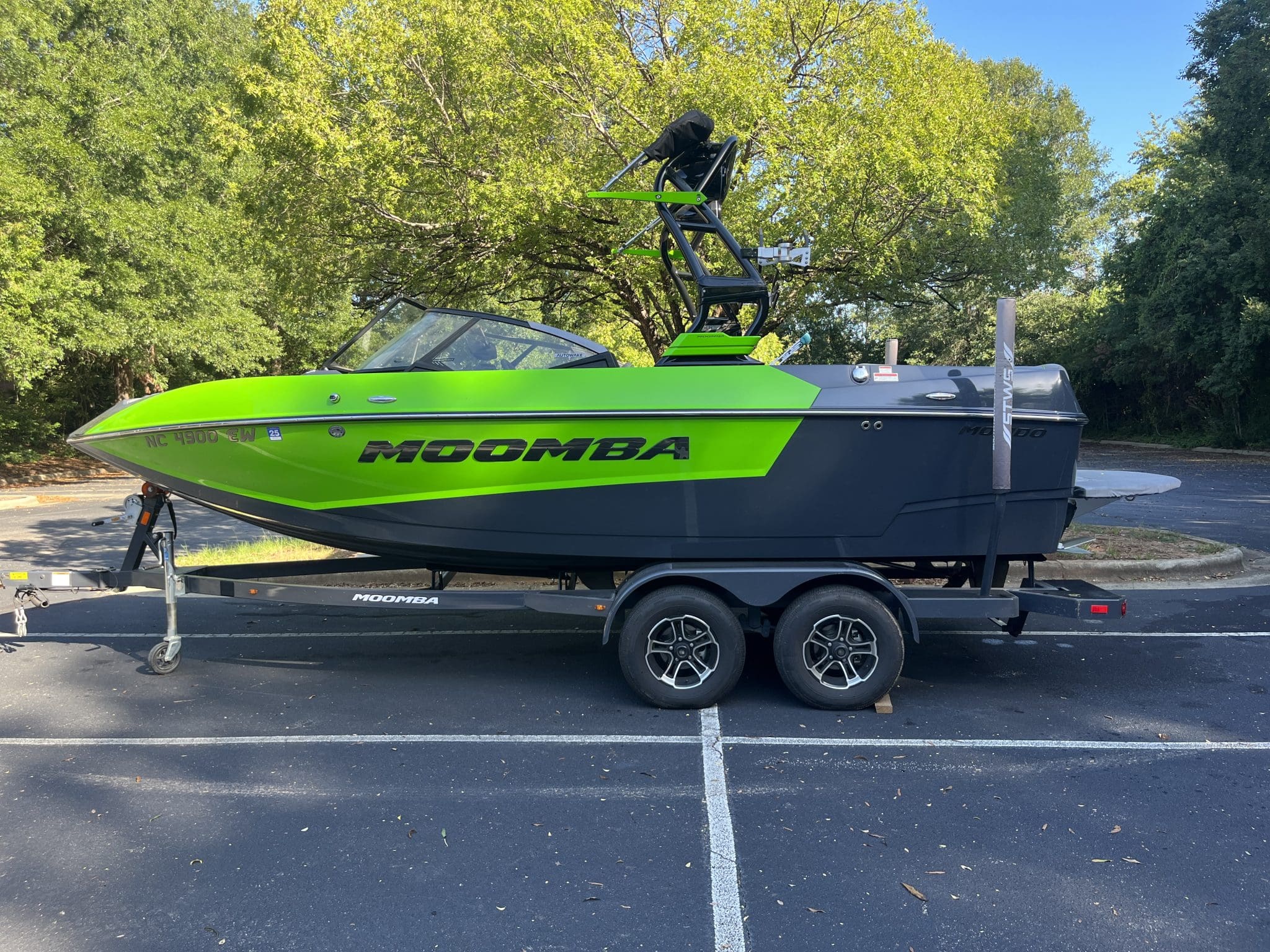 Paired with a tandem axle trailer, this 2022 Mondo is ready for easy transport to any of North Carolina’s famed lakes – from Norman to Wylie and beyond. Its 2.2-foot draft means it stays nimble and easy to maneuver in shallower launches, while the swim platform cover keeps your rear platform protected from the elements. The used condition represents an opportunity to step into Moomba ownership at an accessible point, while still enjoying late-model technology and styling.