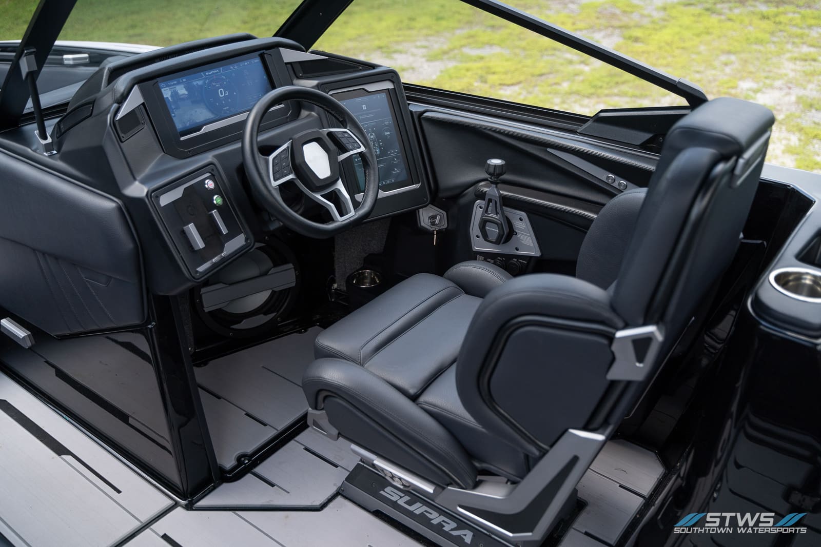 From the captain’s chair, the experience feels futuristic. Supra’s Vision Control touchscreen acts as your command center, where you manage ballast, lighting, temperature, and music. The helm’s ergonomics keep every essential control within reach, paired with a clear display that performs brilliantly even under bright sunlight. The Raptor engine’s data and system feedback display in real time, creating confidence when commanding that kind of power.