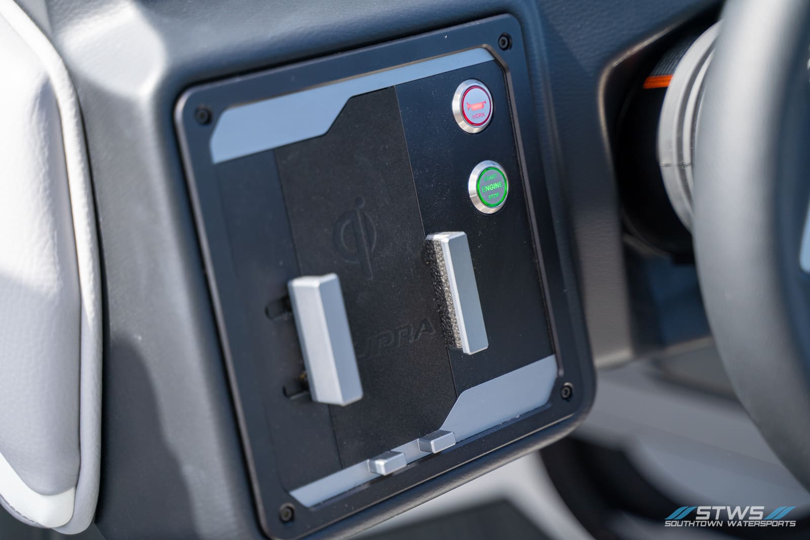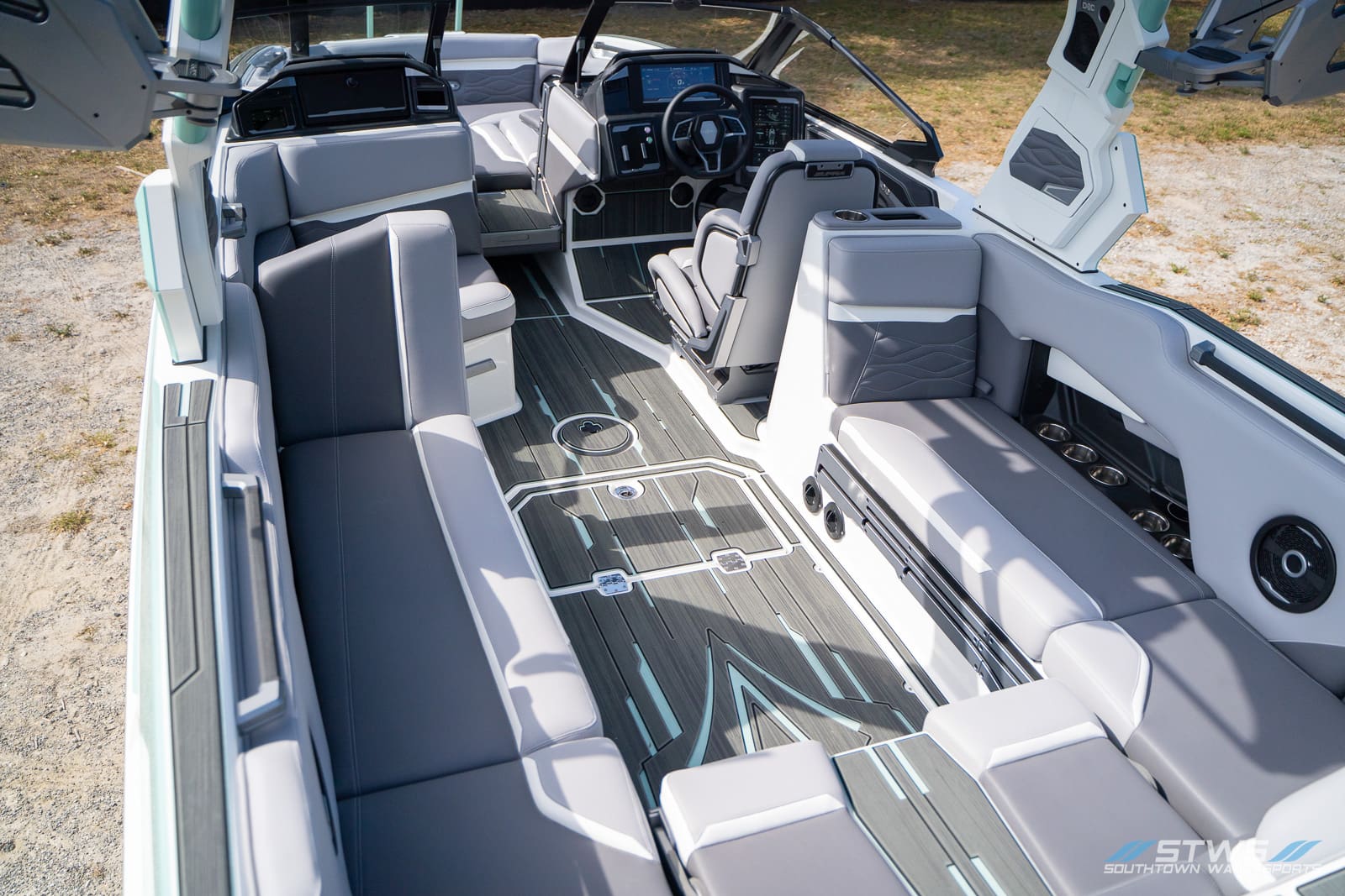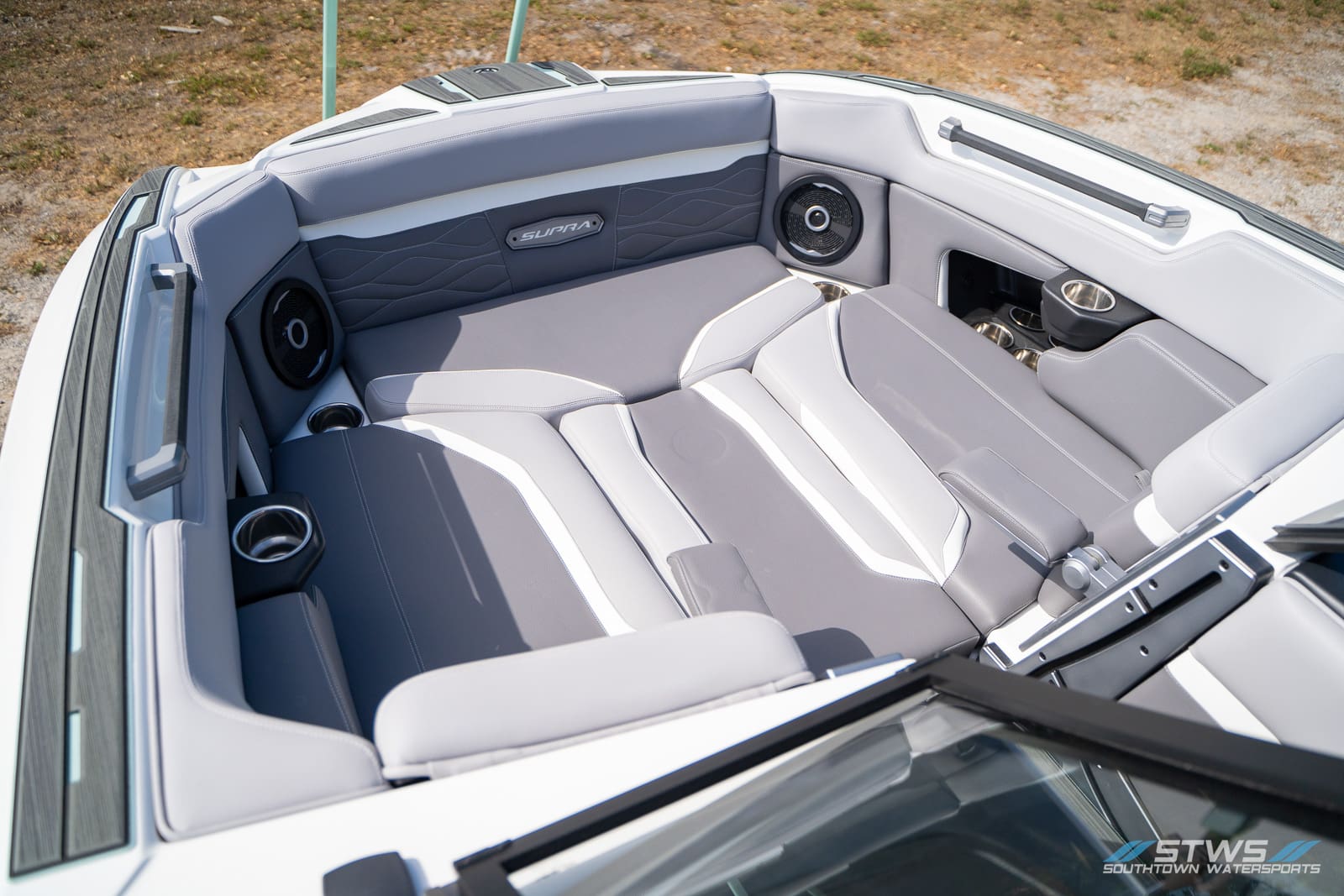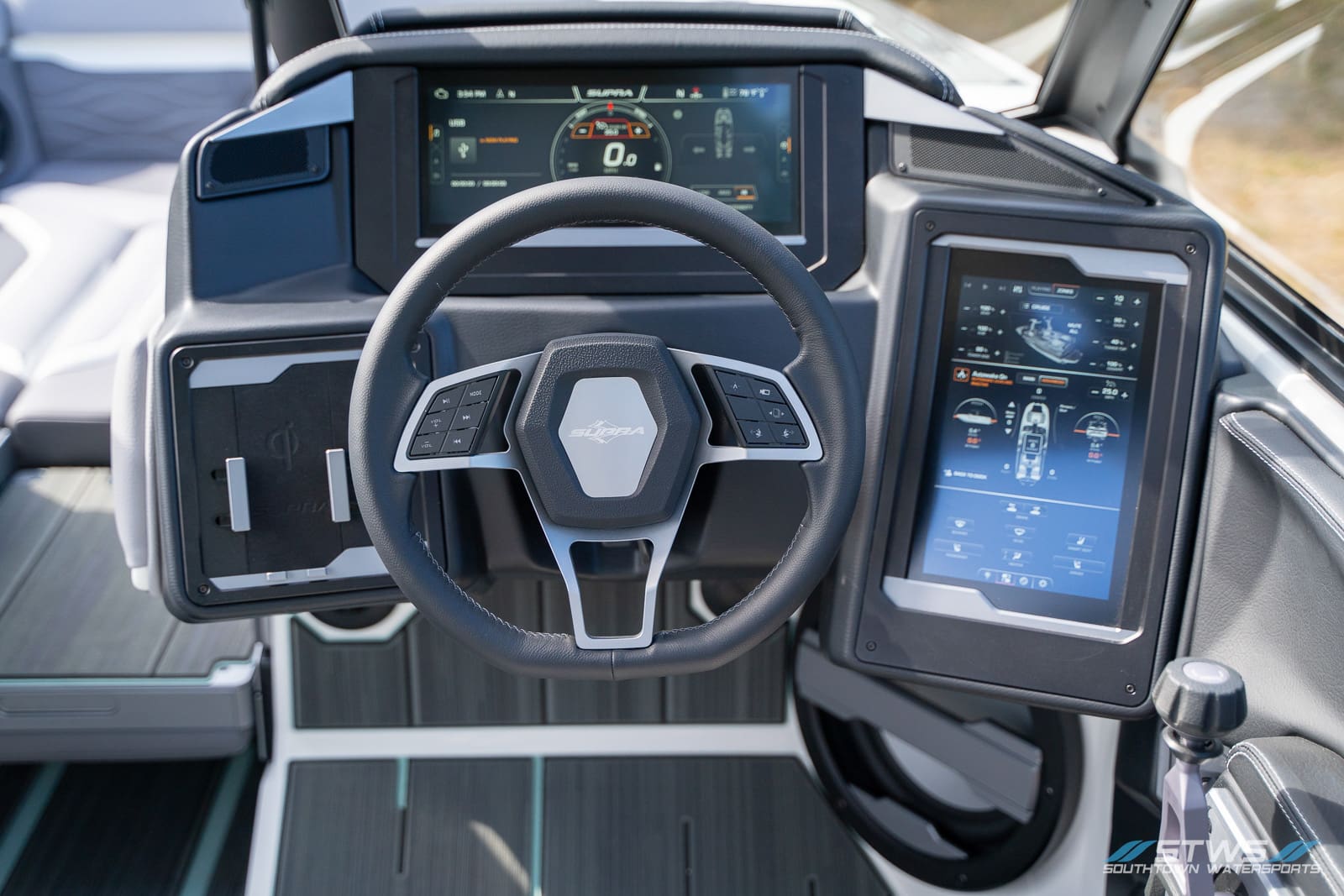 Performance is only half the story. The SE’s luxury touches make each ride more enjoyable: plush seating that wraps around the cockpit, plenty of cupholders for long days with a crowd, and advanced sound that rivals premium automotive systems. The helm’s digital-analog hybrid setup keeps the driver connected to both feel and feedback, maintaining that satisfying link between boat and rider. From a technical standpoint, Supra’s surf systems lead the market in clean, consistent waves and easy transition from side to side.