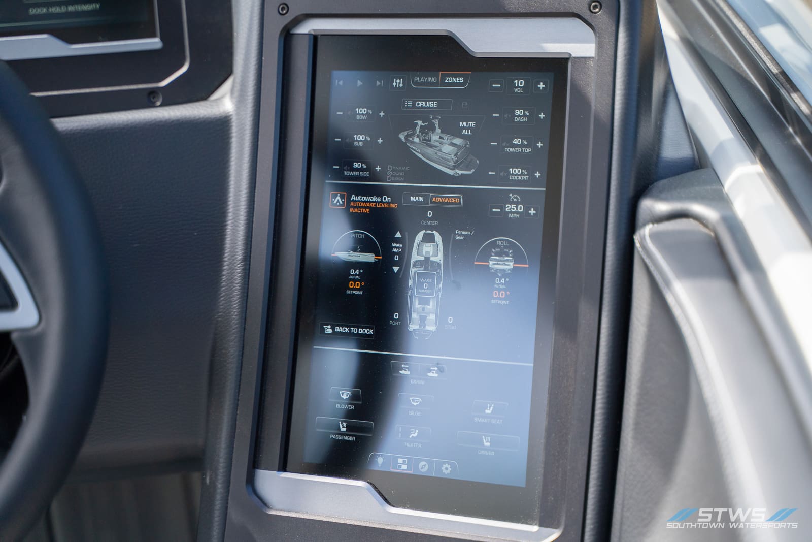 Supra’s touchscreen helm brings together control, convenience, and confidence. The Vision Control System allows drivers to monitor and adjust ballast, cruise, and surf settings effortlessly, all while keeping safety at the forefront. Real-time data for pitch, roll, and speed ensures perfect wave setup every time. The optional Supra Swell Surf System continues to dominate in the world of customizable surf shapes—offering crisp transitions from side to side and an effortless push that keeps riders locked into perfect flow.