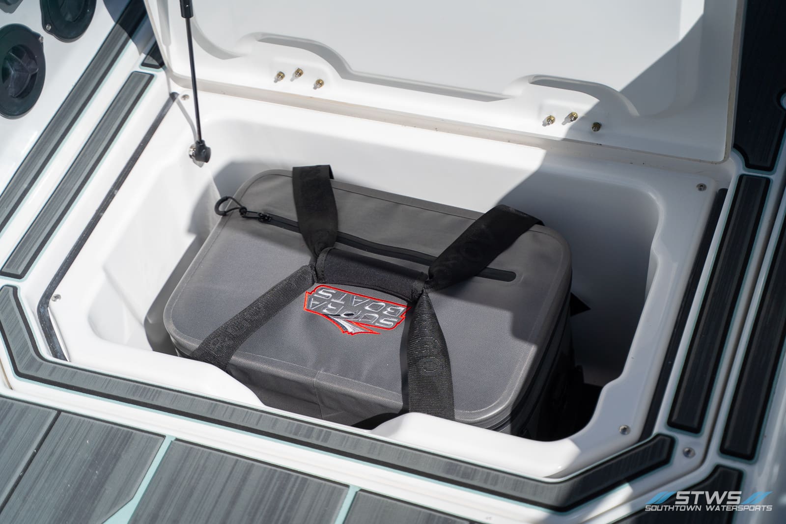 Supra’s designers balance luxury and practicality beautifully. The deep freeboard not only improves safety and confidence when loading riders or anchoring, but it also helps maintain that familiar Supra stability in crosswinds or chop. The high-efficiency ballast system fills quickly and quietly, minimizing downtime so your crew can spend more time riding and less time waiting. The SE’s lighting package delivers plenty of atmosphere for sunset runs and evening cruises, ensuring the day doesn’t end when the sun dips below the horizon.